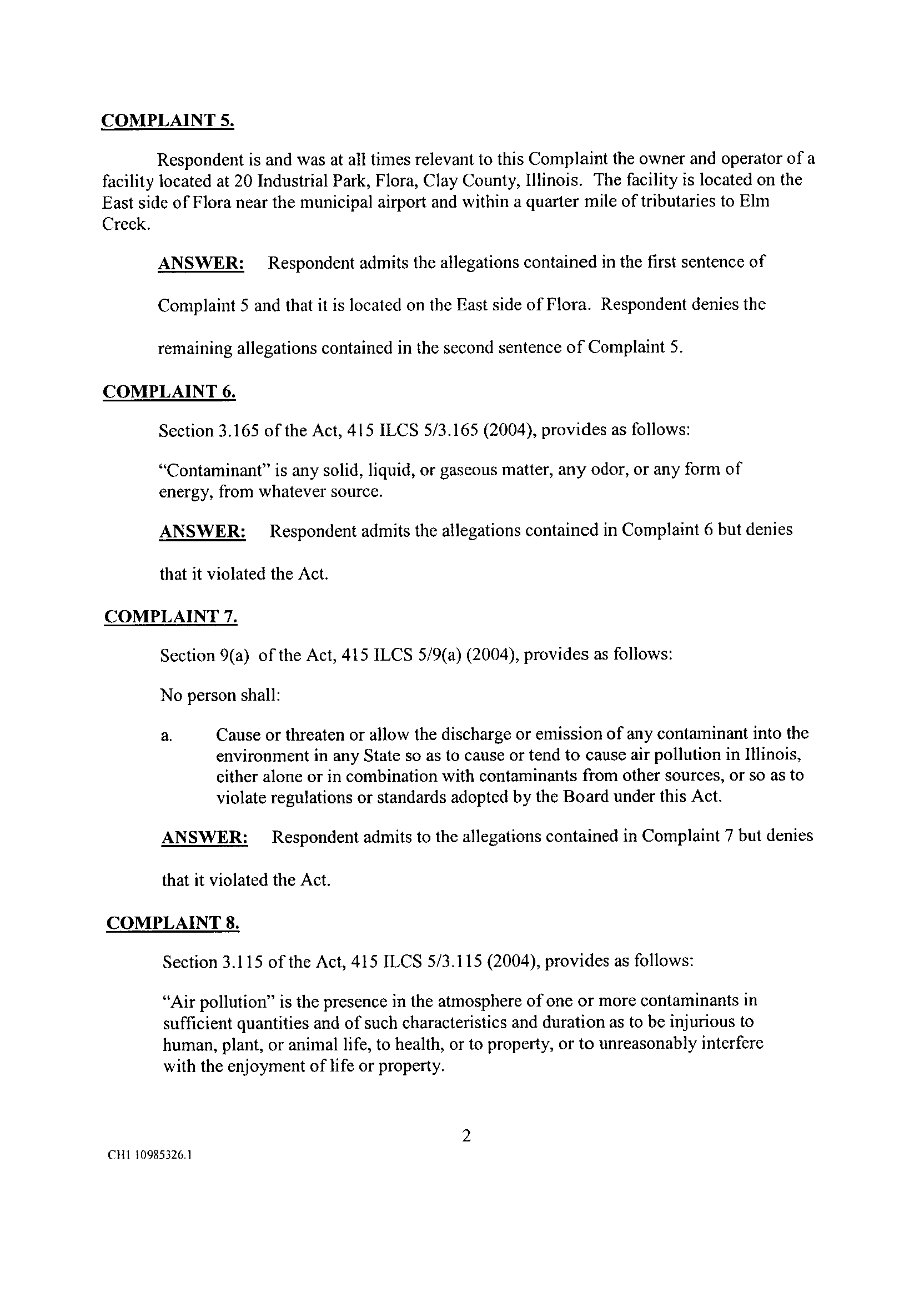 Complaint 5 and that it is located on the East side of Flora . Respondent denies the