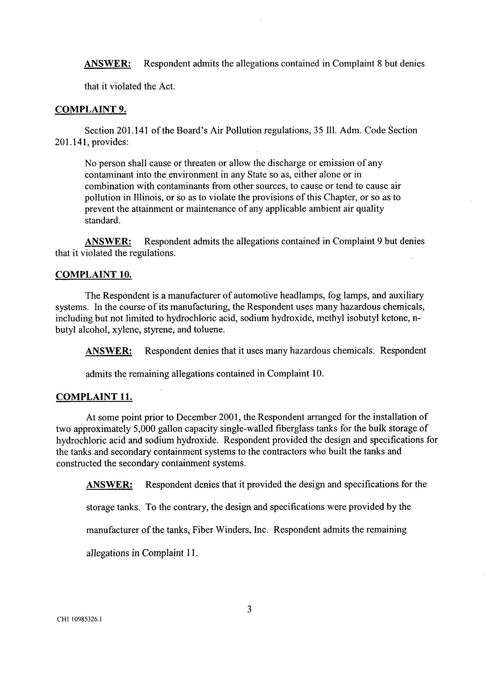 systems. In the course of its manufacturing, the Respondent uses many hazardous chemicals,