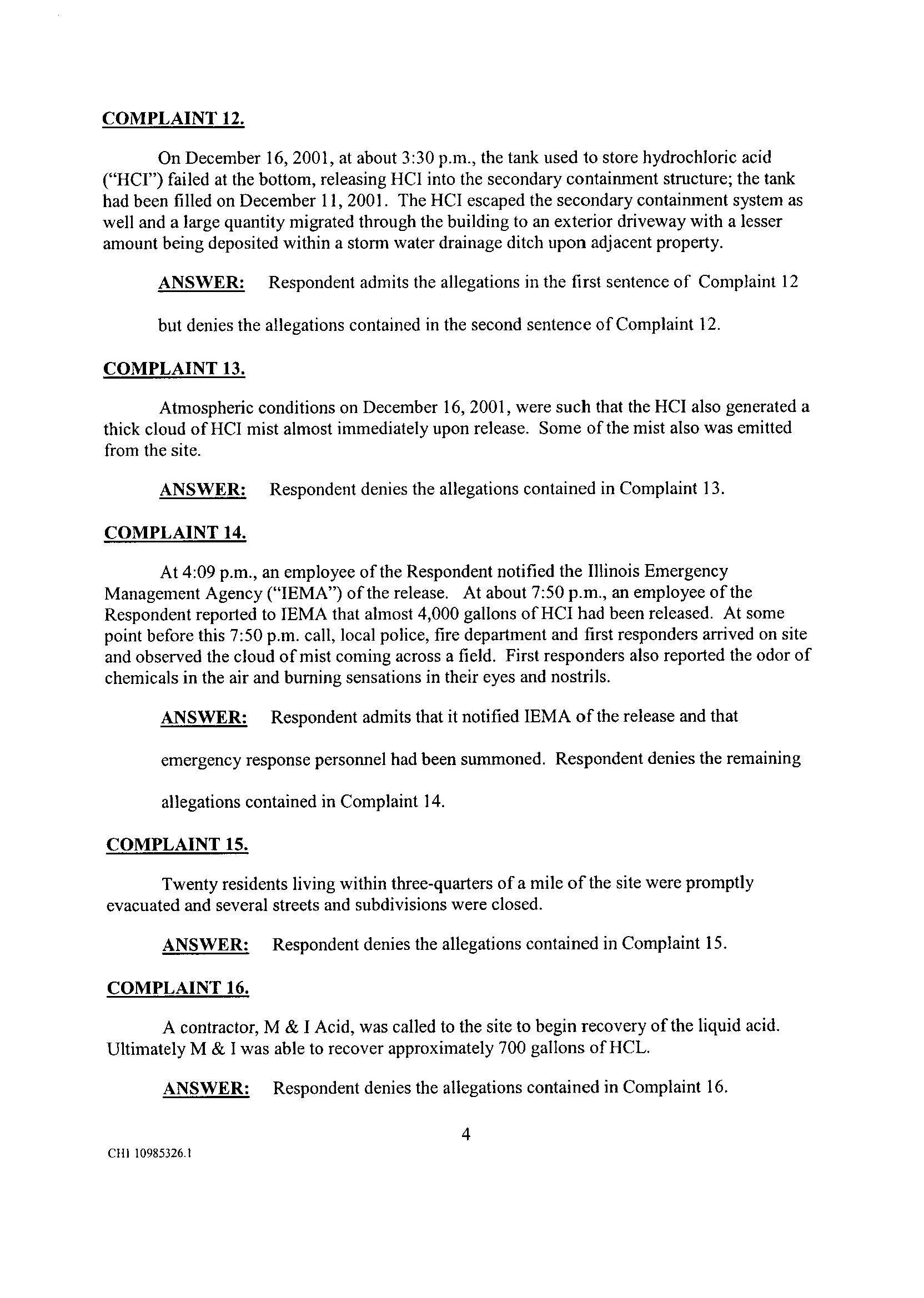 Respondent denies that it uses many hazardous chemicals . Respondent