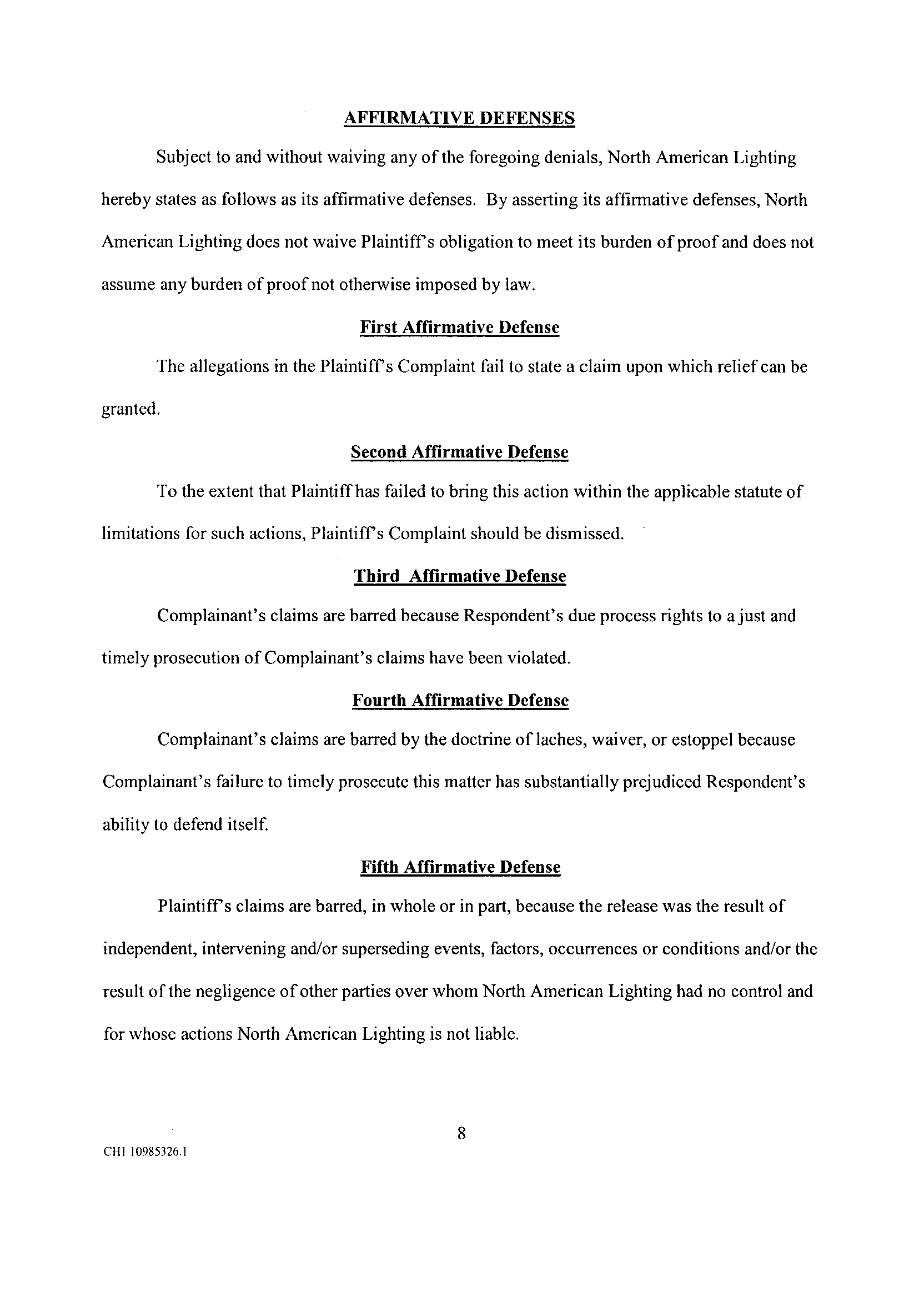 Fifth Affirmative Defense