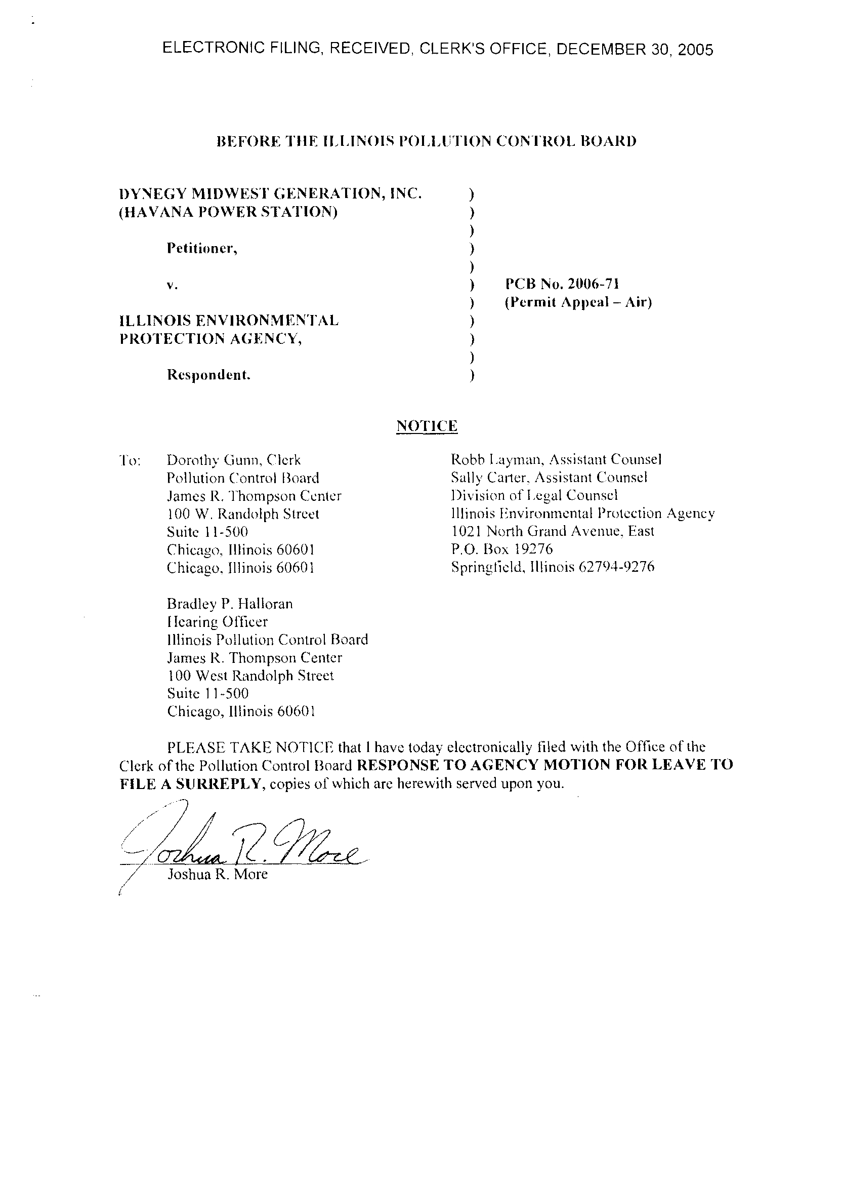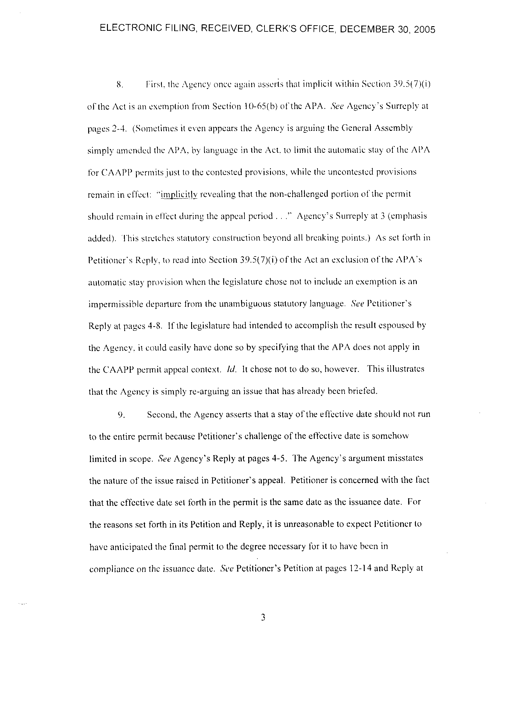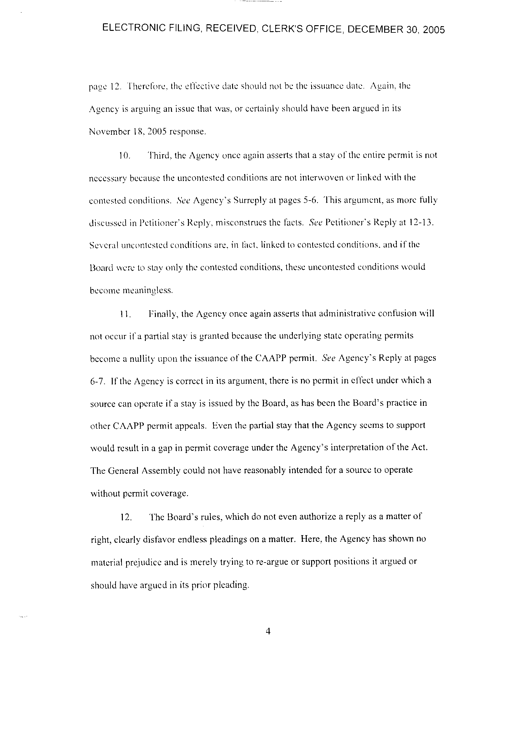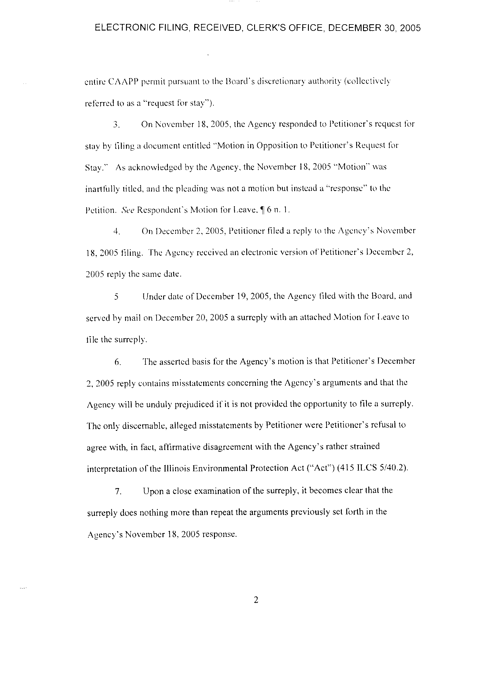 18, 2005 tiling. The Agency received an electronic version ot'Petitioner's December 2,