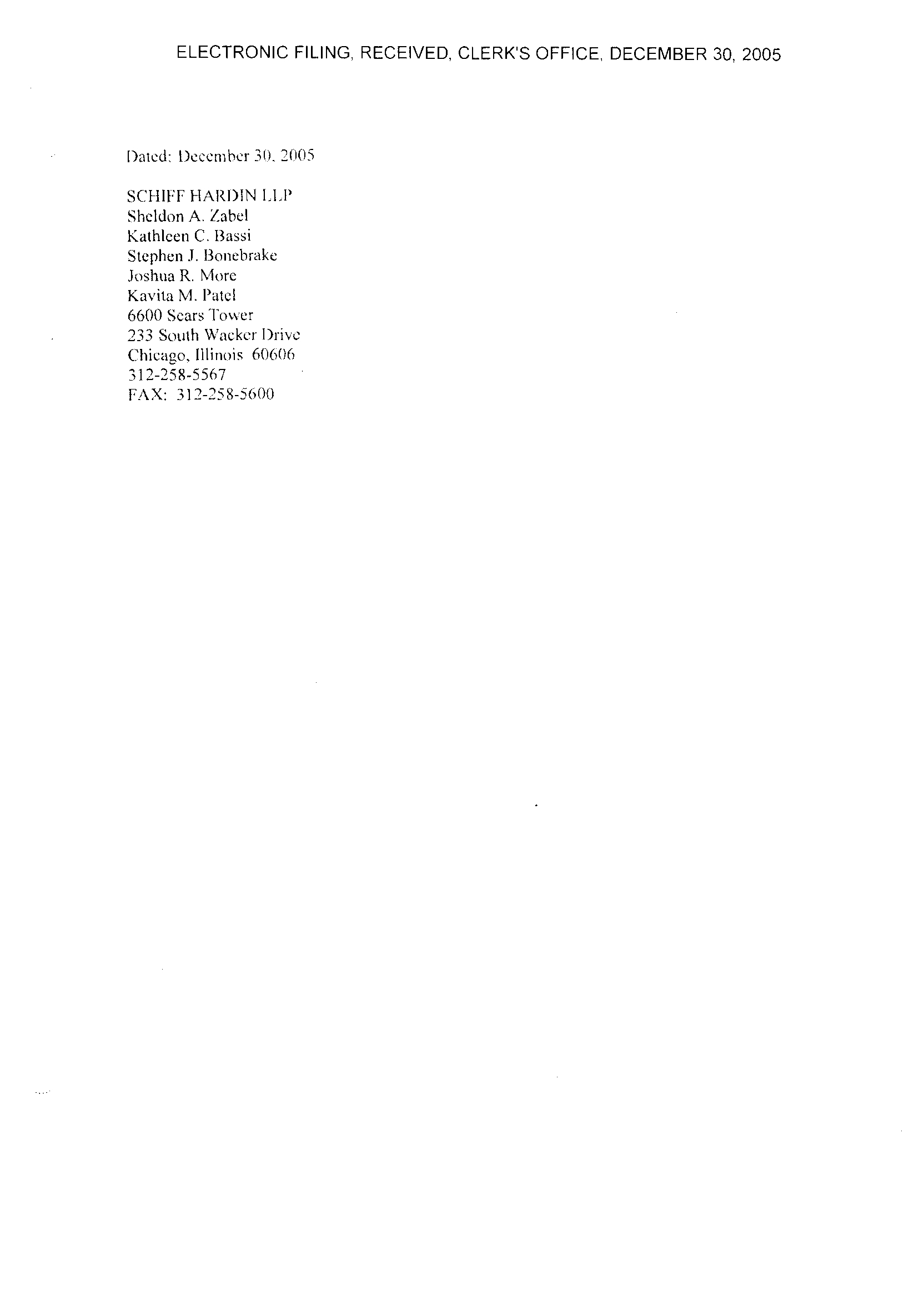 ELECTRONIC FILING, RECEIVED, CLERK'S OFFICE, DECEMBER 30, 2005