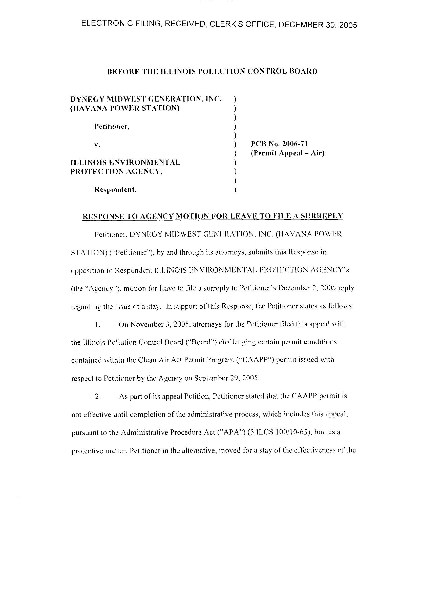 Petitioner, DYNEGY MIDWEST GENERATION . INC. (HAVANA POWER