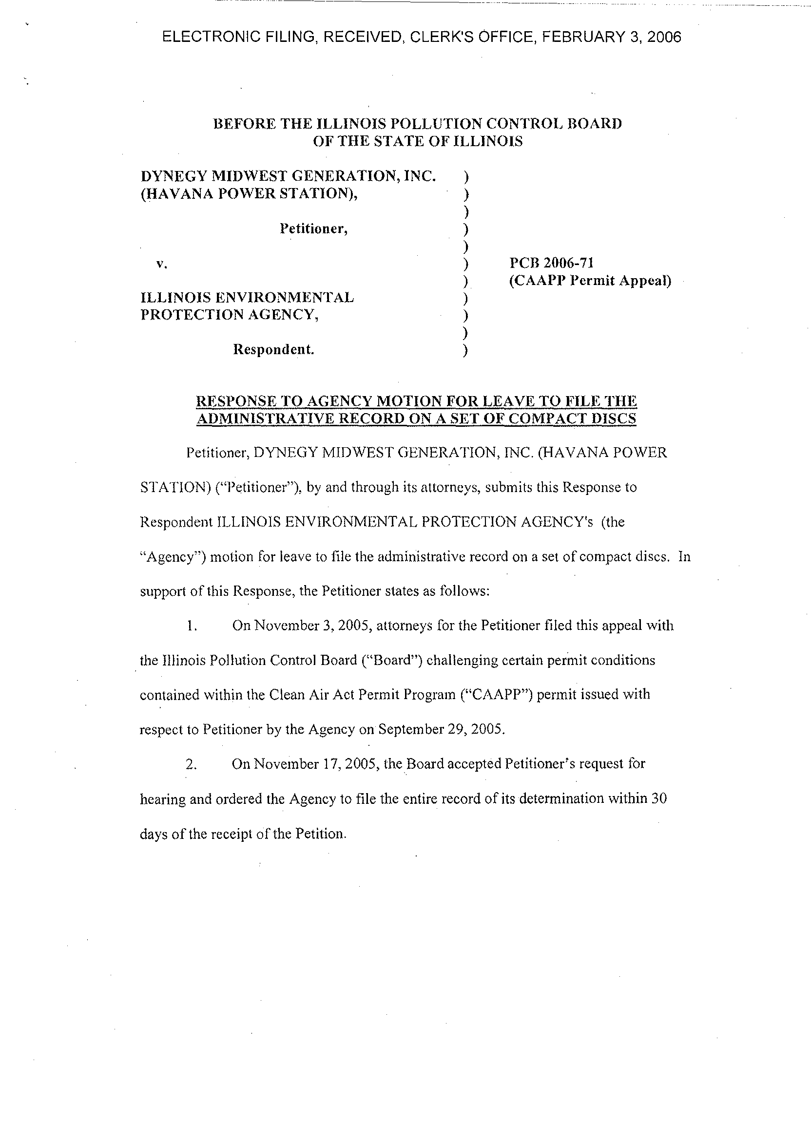 Petitioner, DYNEGY MIDWEST GENERATION, INC. (HAVANA POWER