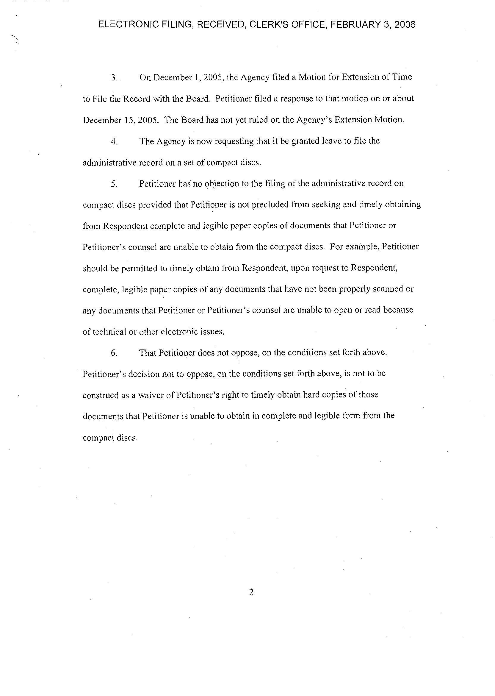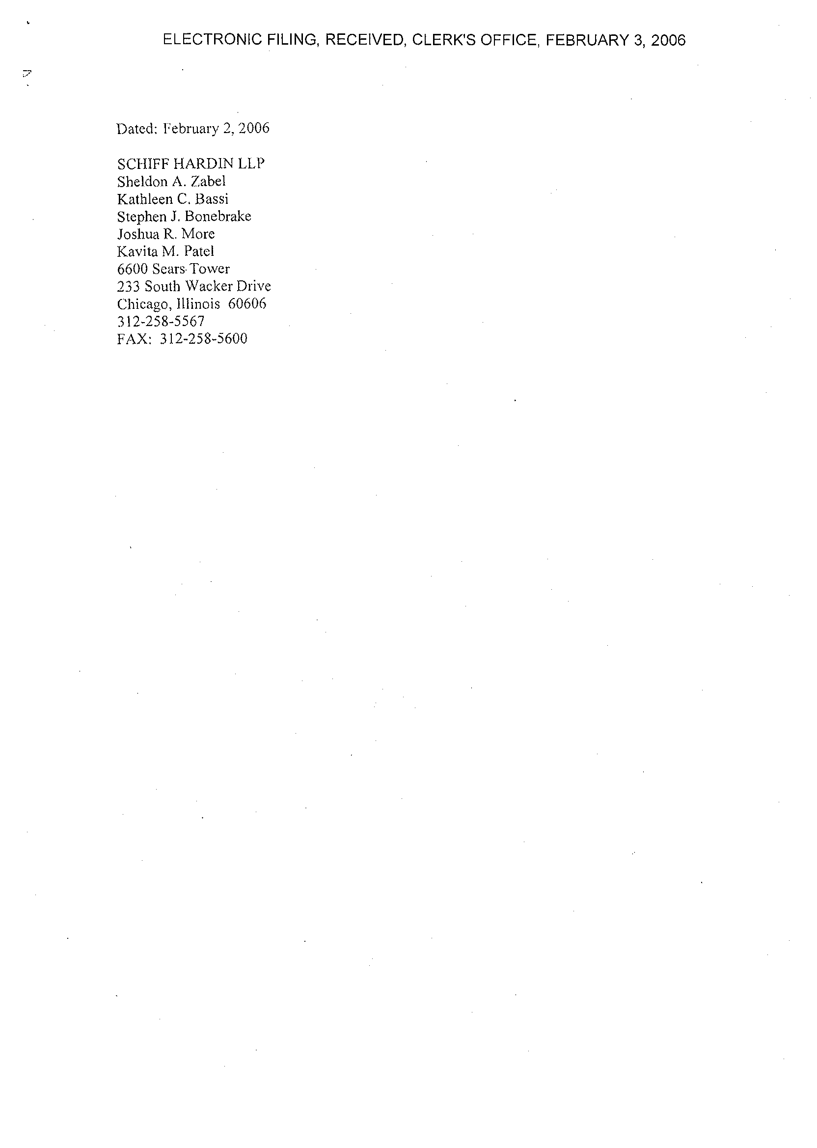ELECTRONIC FILING, RECEIVED, CLERK'S OFFICE, FEBRUARY 3, 2006