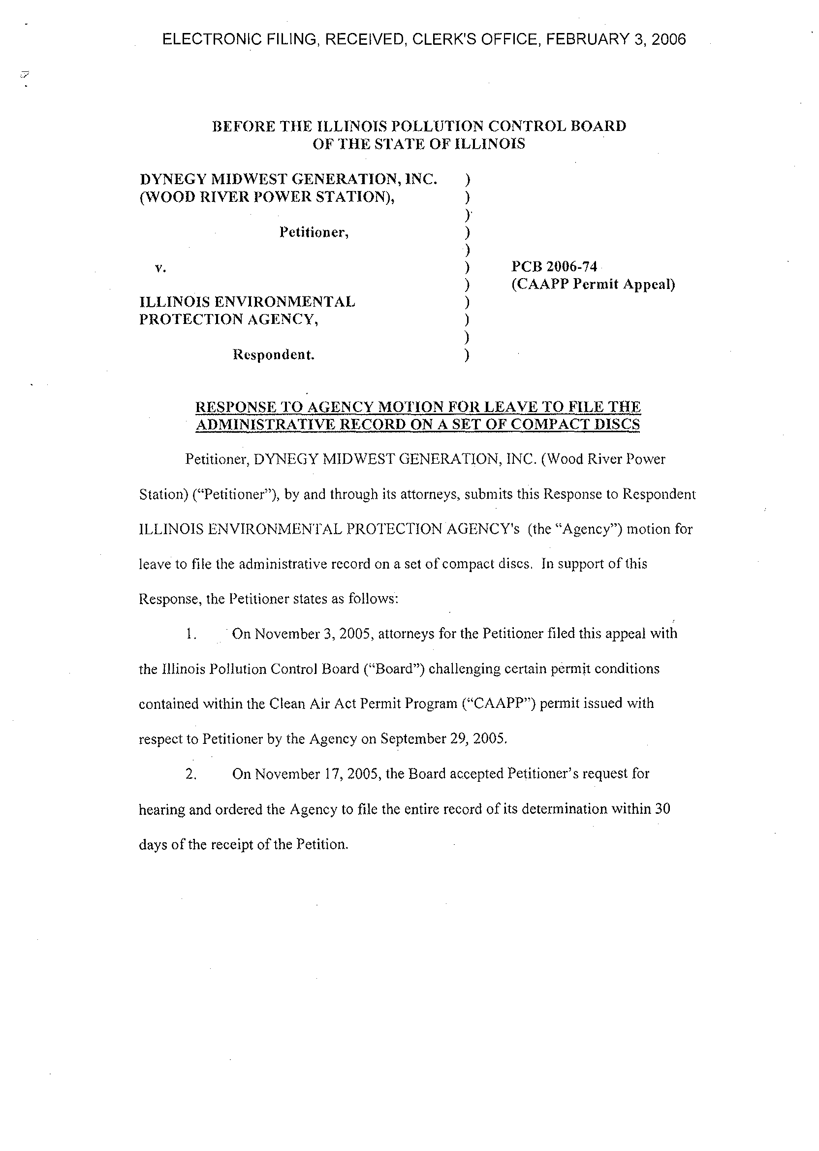 Petitioner, DYNEGY MIDWEST GENERATION, INC . (Wood River Power