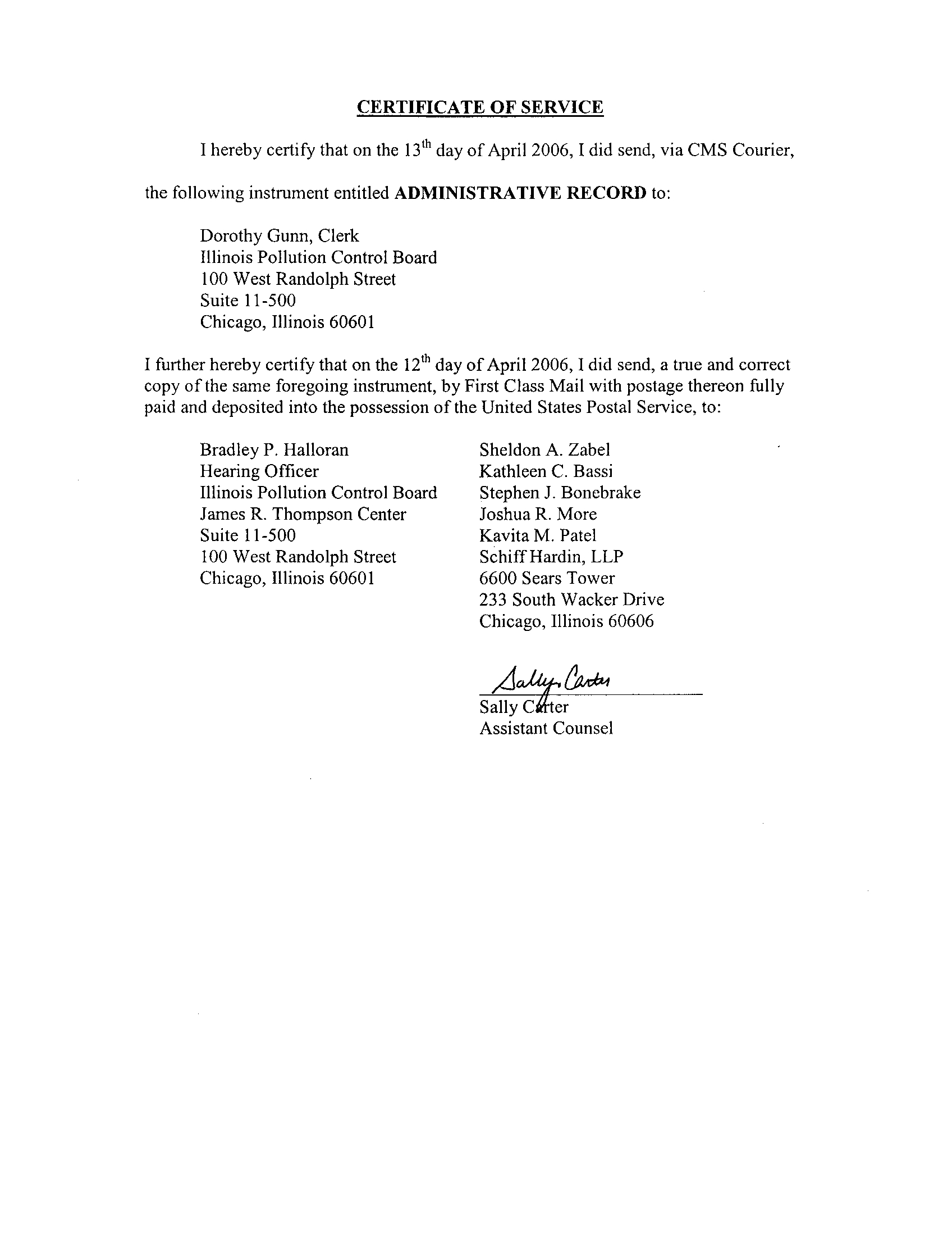 I hereby certify that on the 13`h day of April 2006, I did send, via CMS Courier,