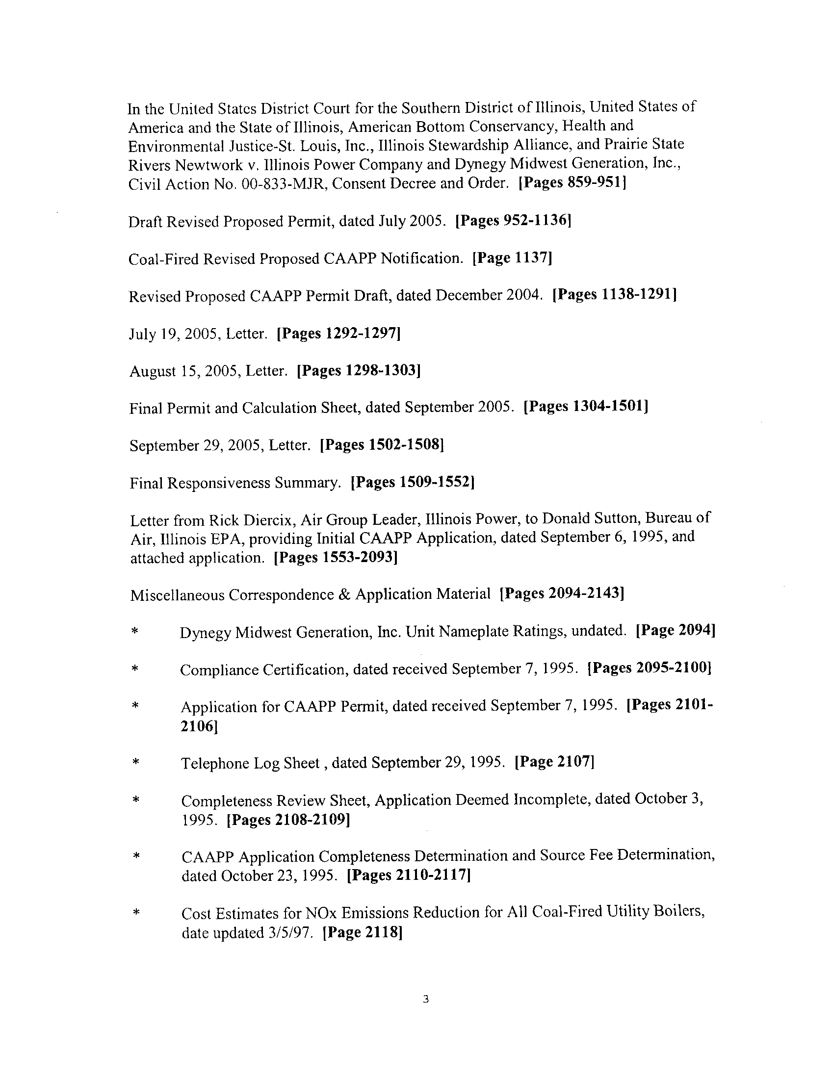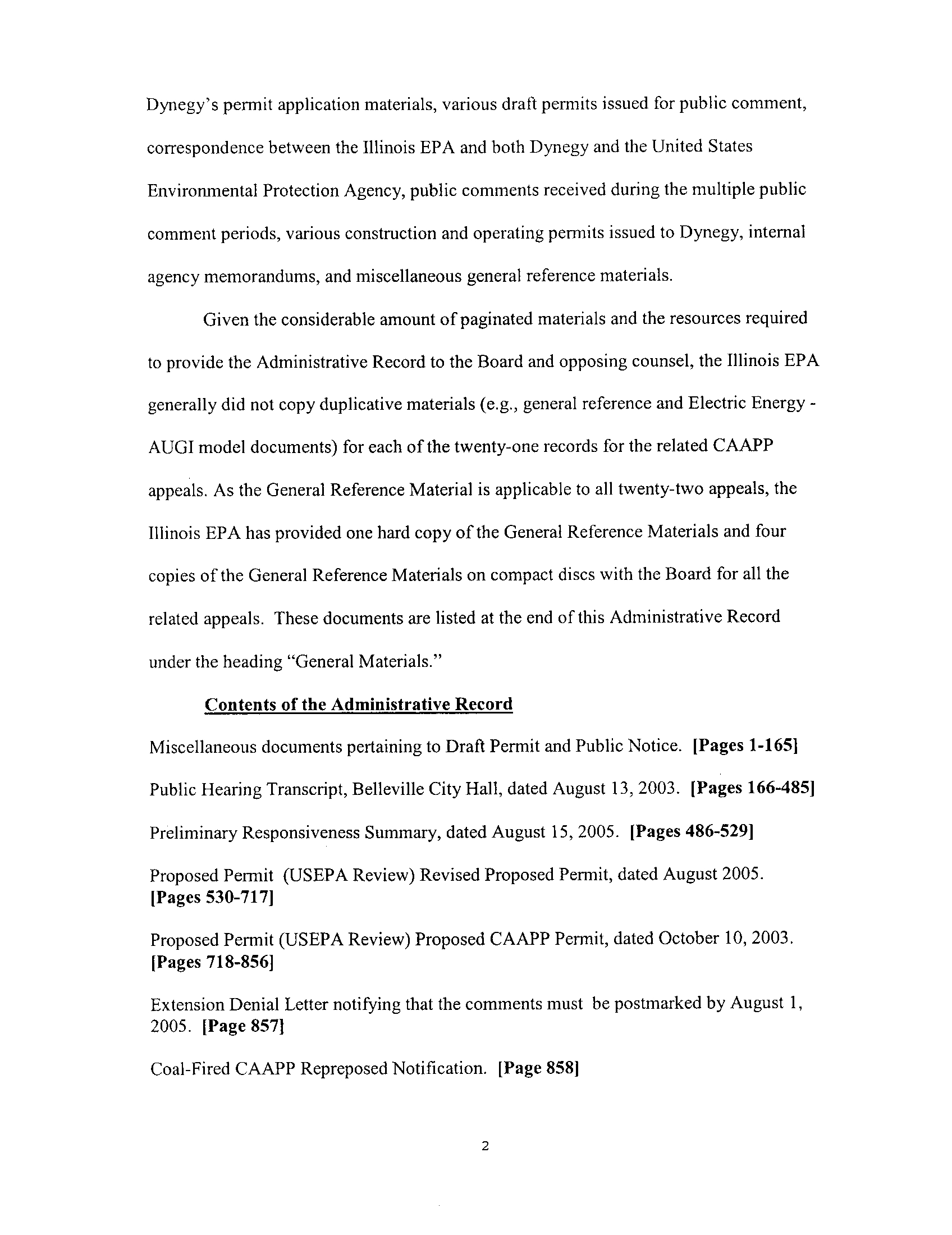 Dynegy's permit application materials, various draft permits issued for public comment,