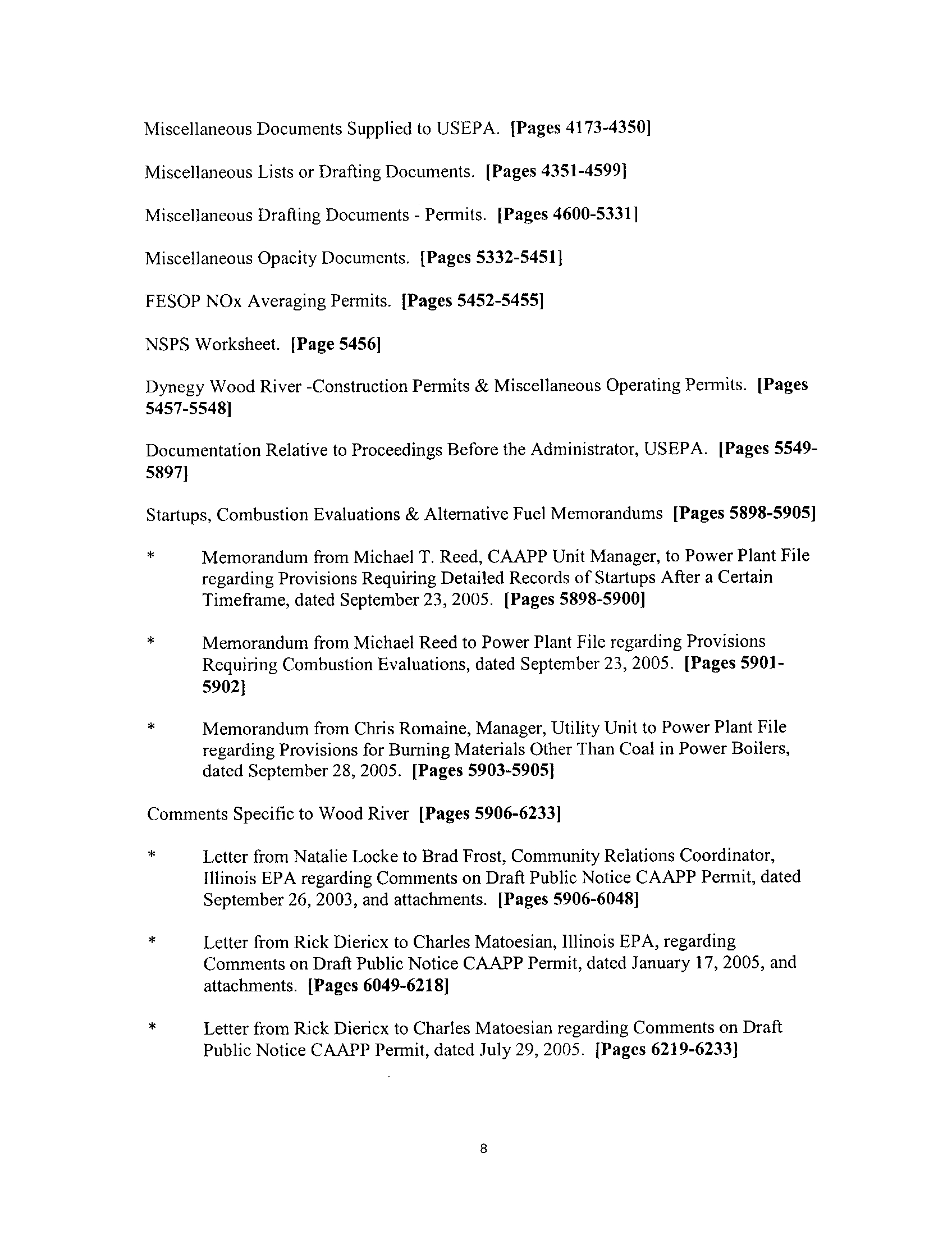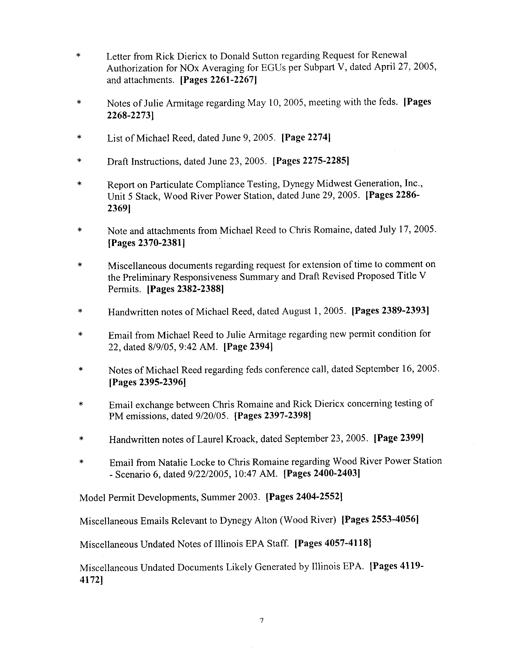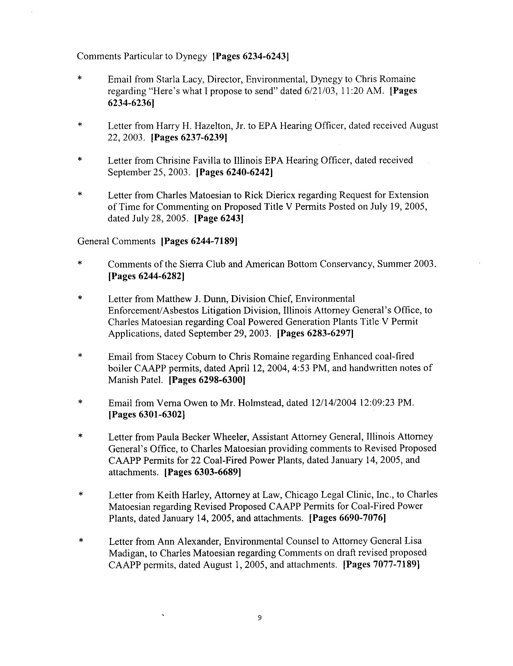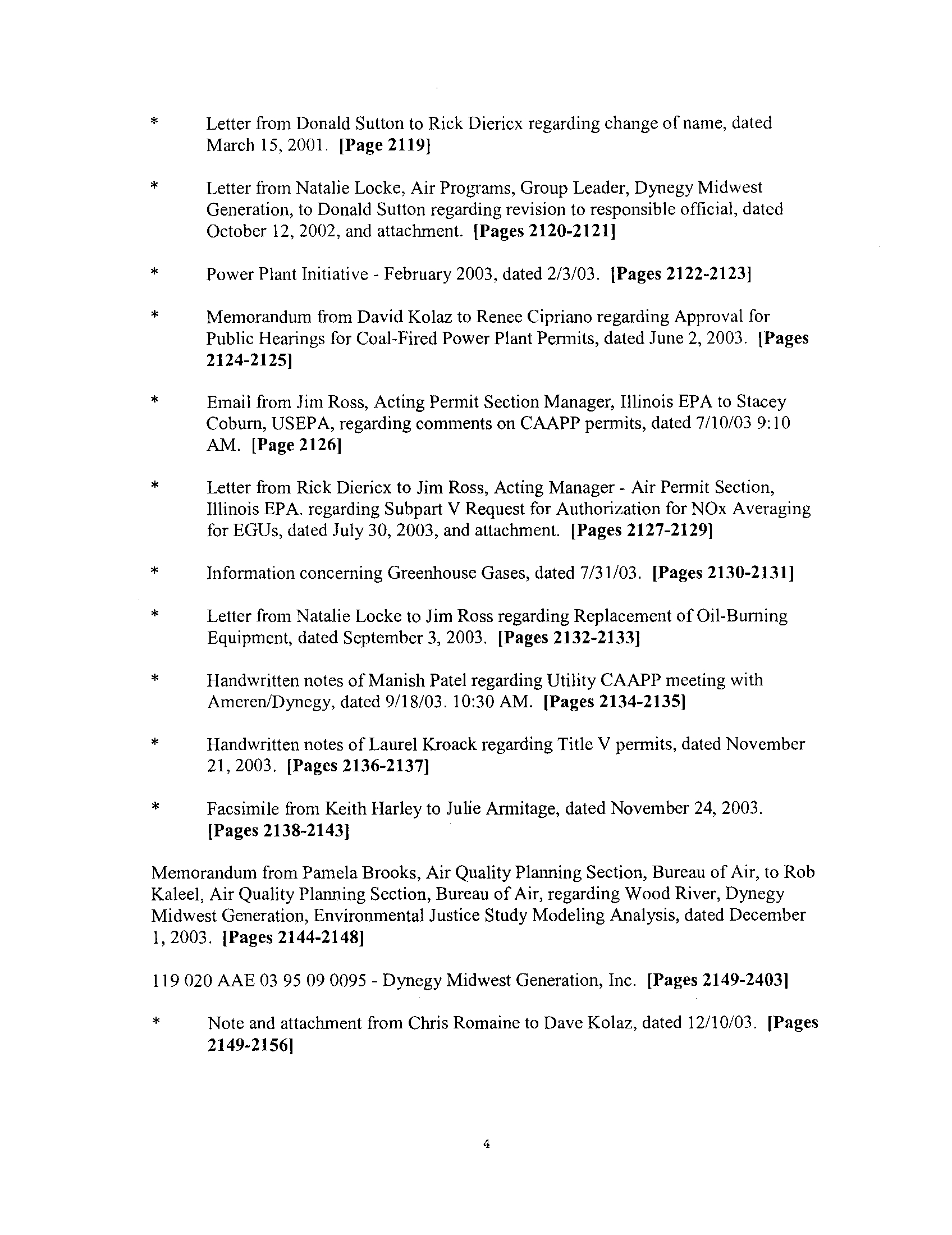 comment periods, various construction and operating permits issued to Dynegy, internal