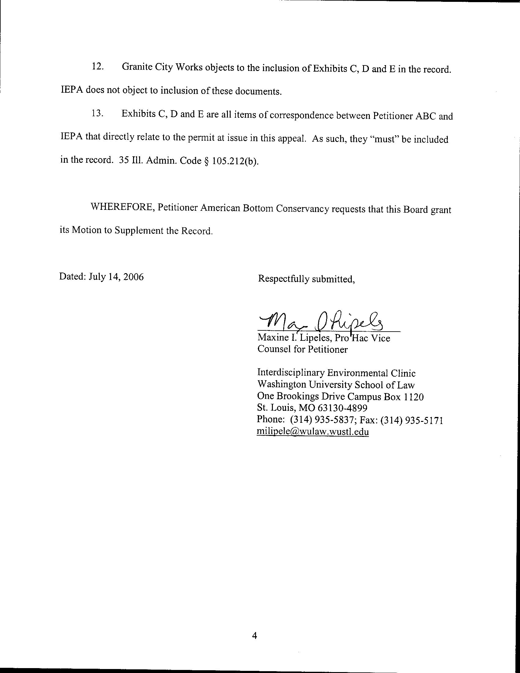 Petitioner American Bottom Conservancy (“ABC”) moves the Illinois Pollution Control