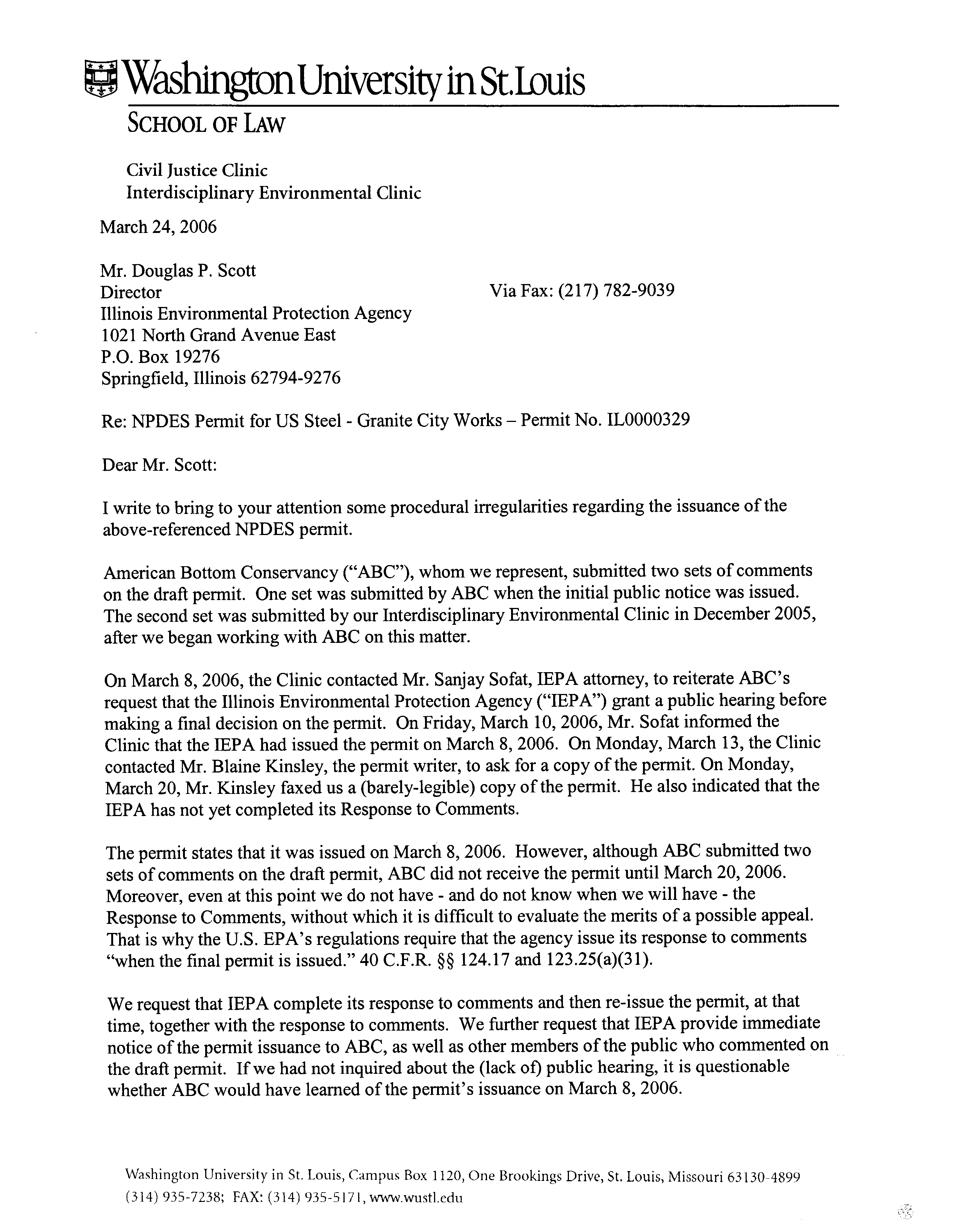 from ABC’s counsel to IEPA concerning procedural irregularities in the issuance of the