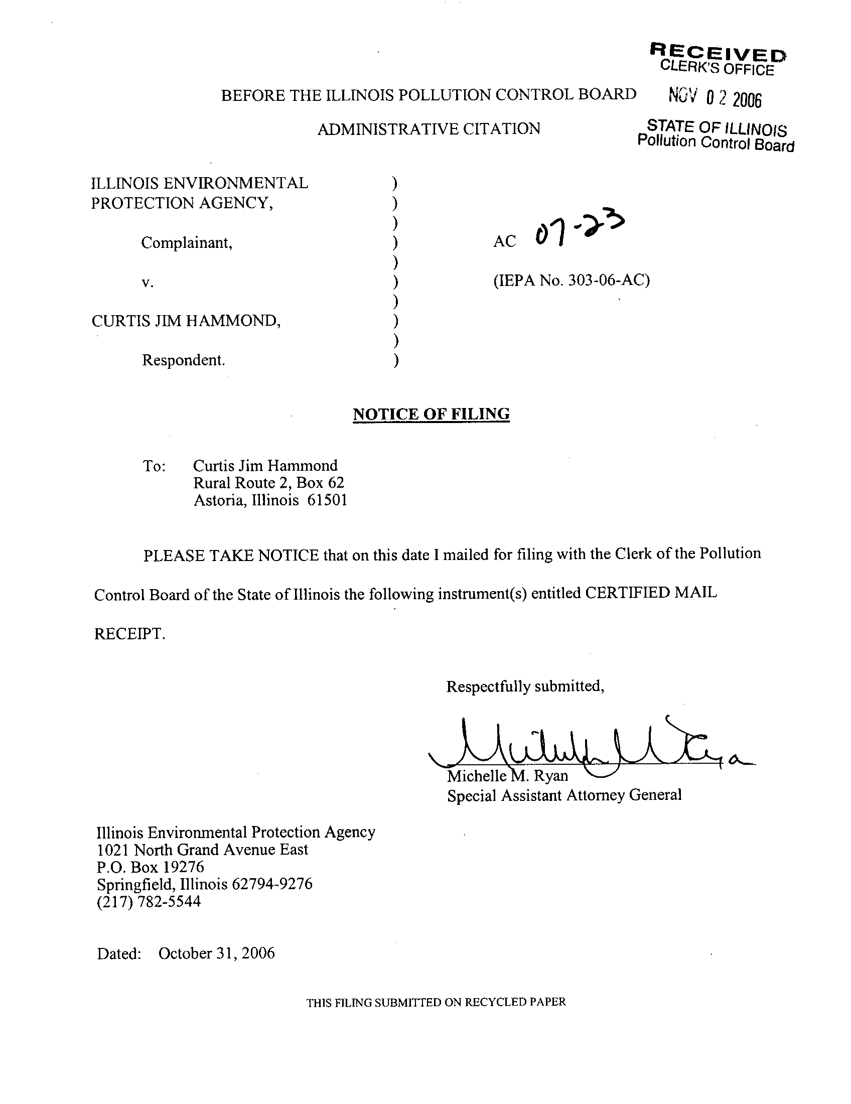 Control Board of the State of Illinois the following instrument(s) entitled CERTIFIED MAIL