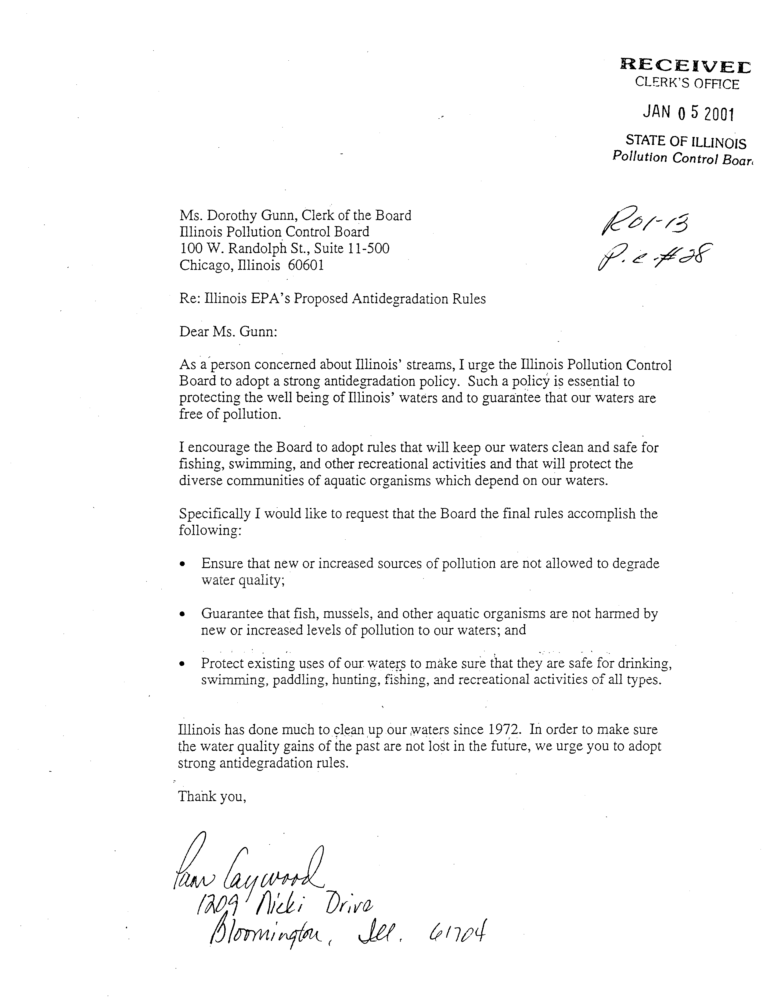 As a~personconcerned about illinois’ streams, I urge the Illinois Pollution Control
