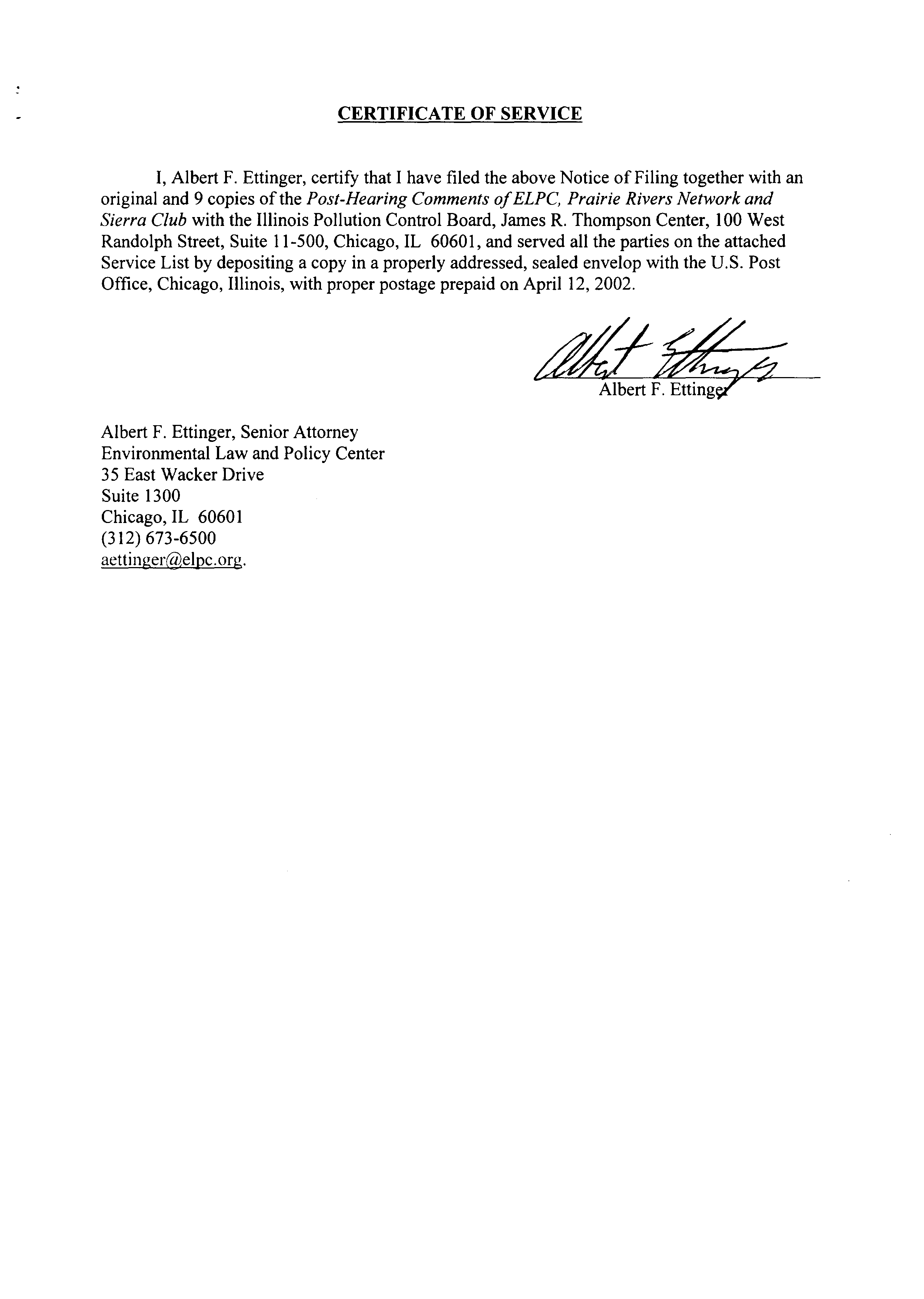 - POST-HEARING COMMENTS OF ENVIRONMENTAL LAW AND POLICY CENTER.
