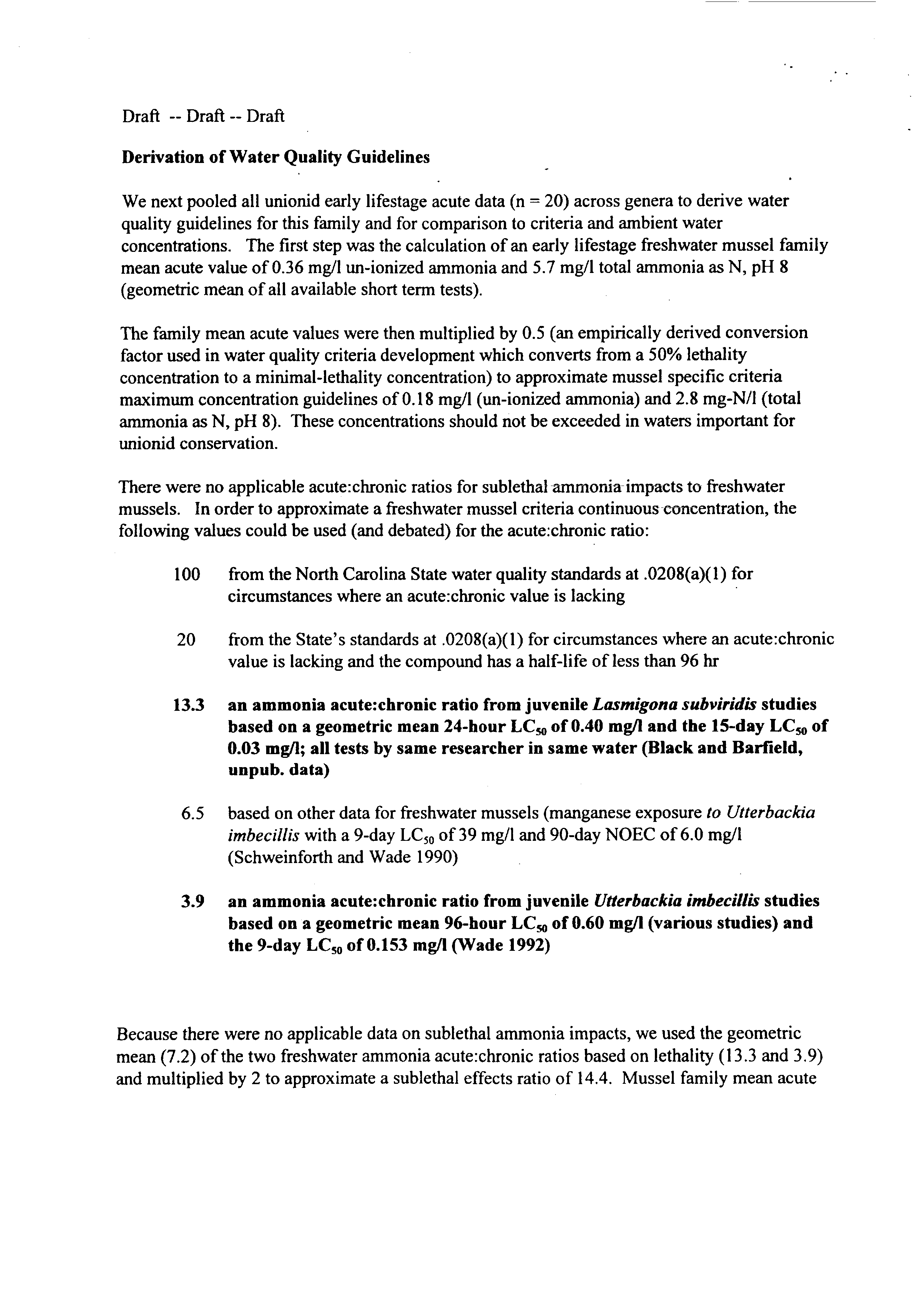 - Freshwater Mussel Criteria Maximum Concentration Guideline 2.8