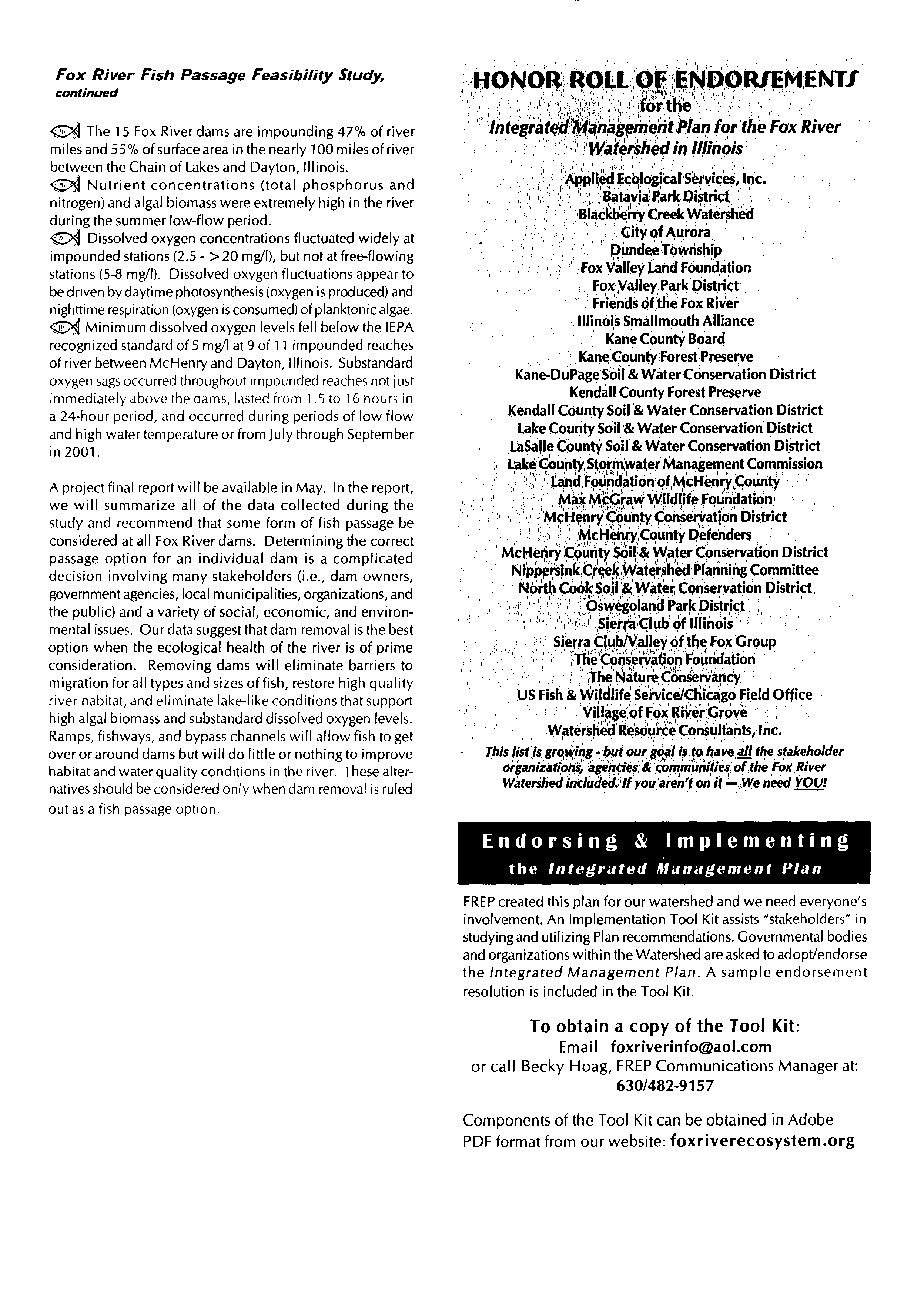 - WINTER 2002 Fox River Fish Passage Feasibility Study