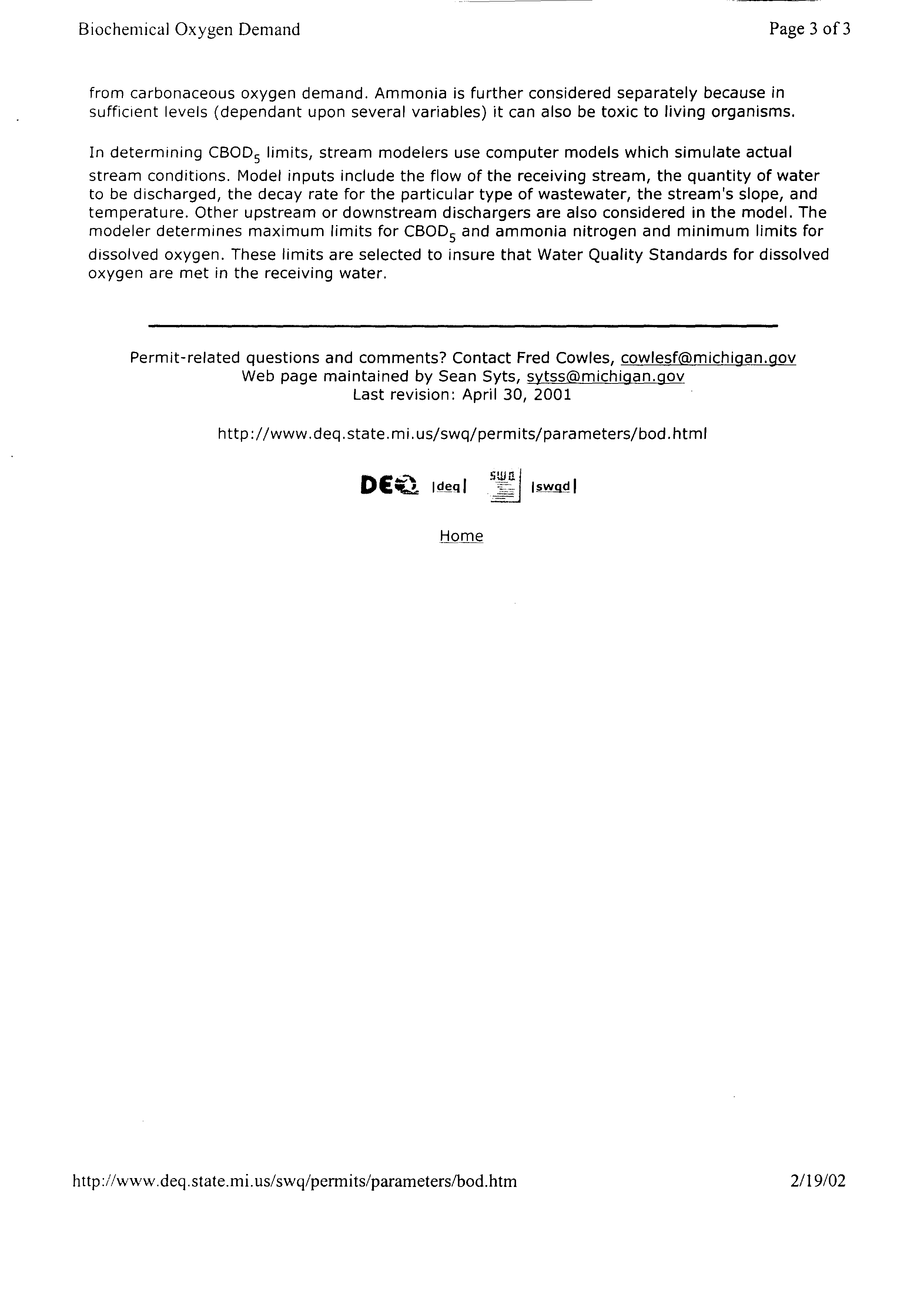 - Biochemical Oxygen Demand Limitations in NPDES Permits