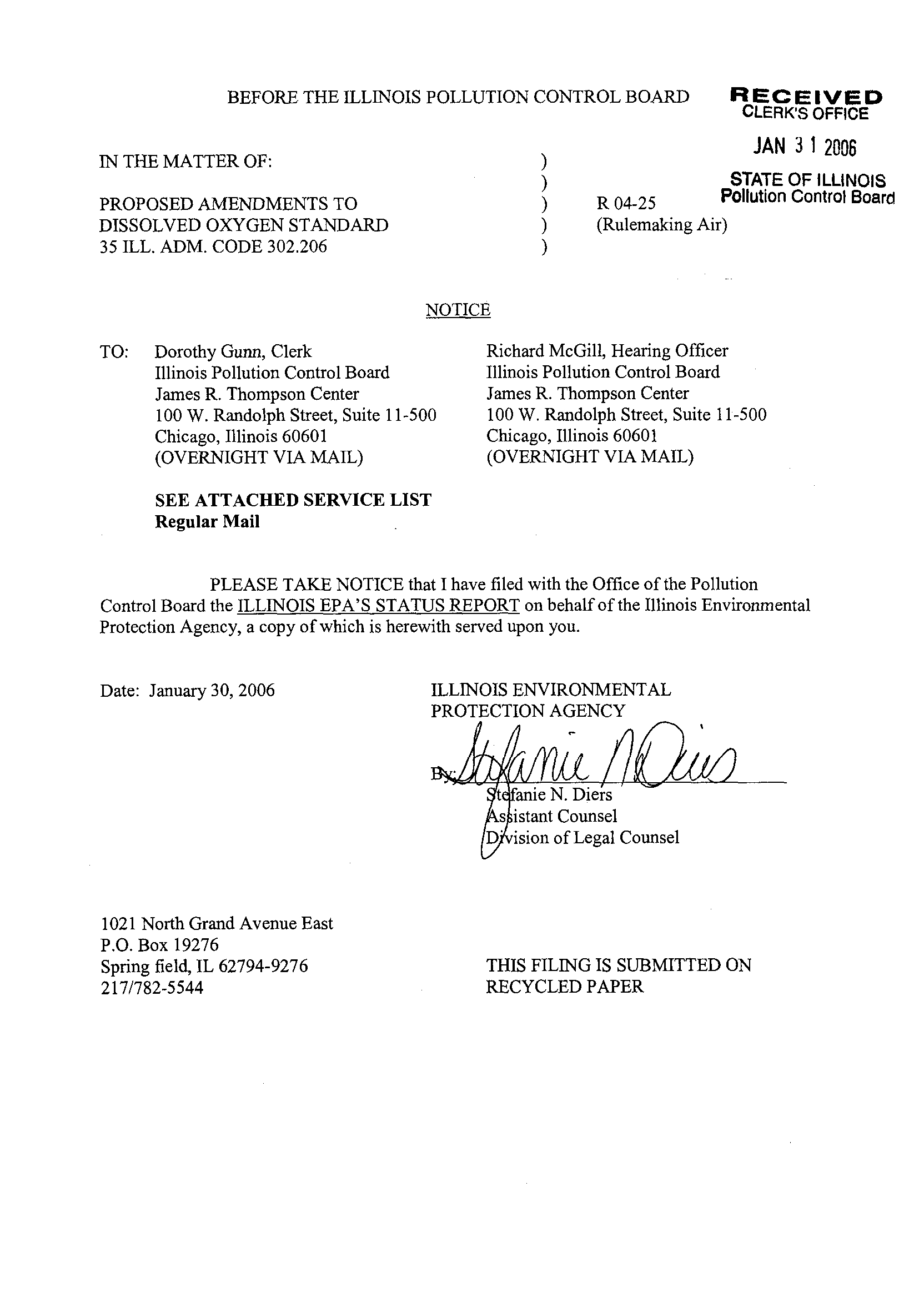 ILLINOIS EPA'S STATUS REPORT on behalf of the Illinois Environmental