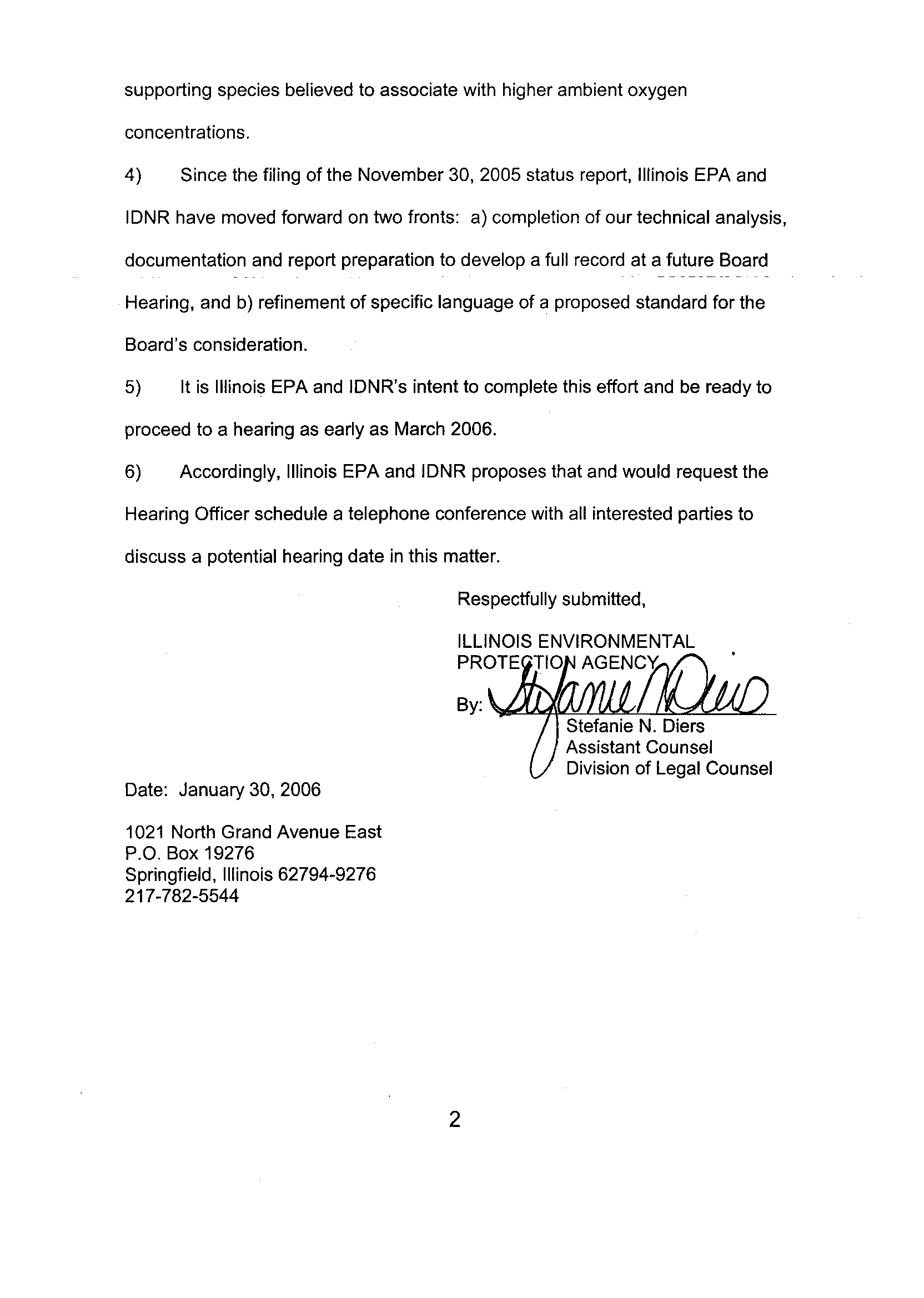 Since the filing of the November 30, 2005 status report, Illinois EPA and