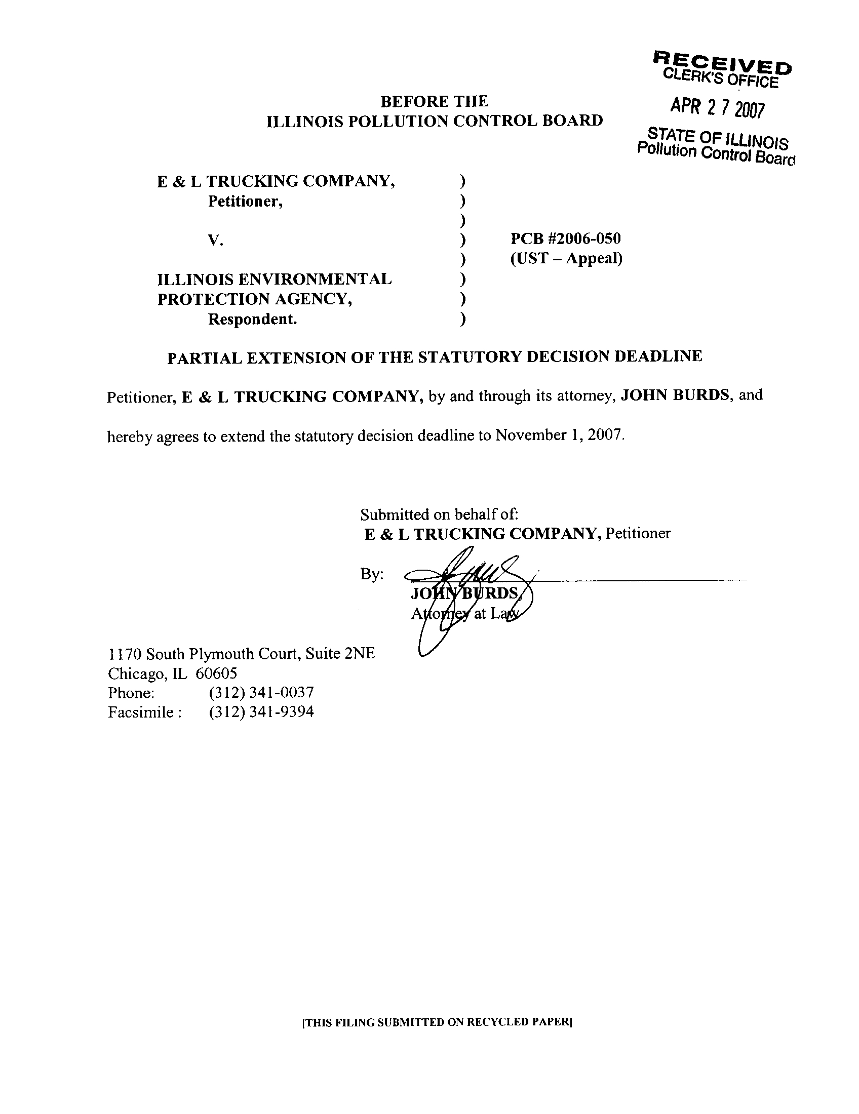 hereby agrees to extend the statutory decision deadline to November 1, 2007