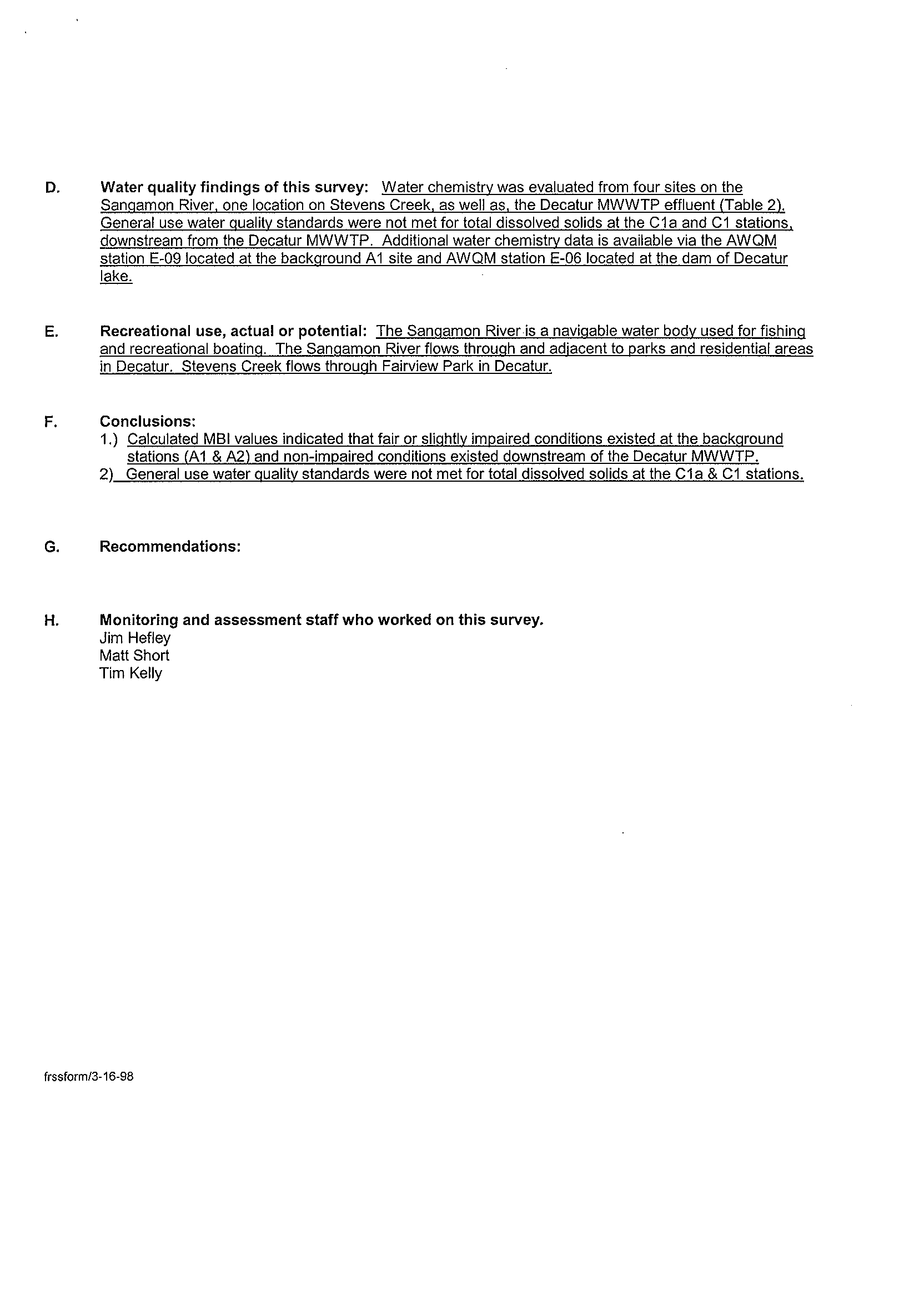 Sangamon River, approximately 2 .0 miles upstream from the Decatur MWWTP at