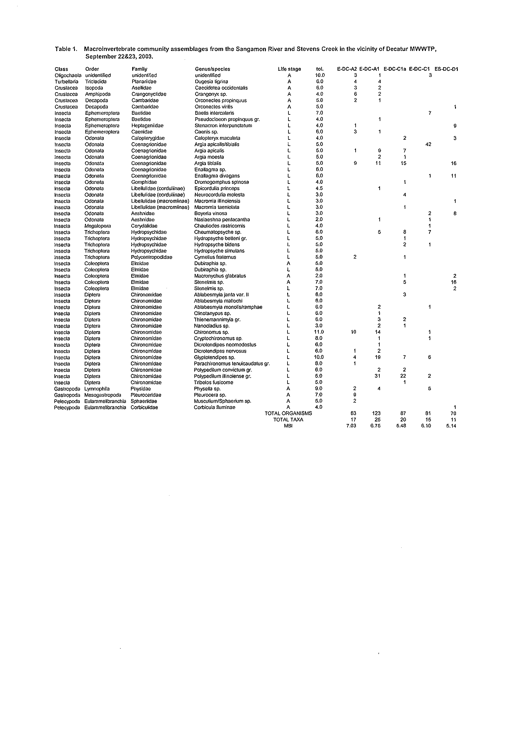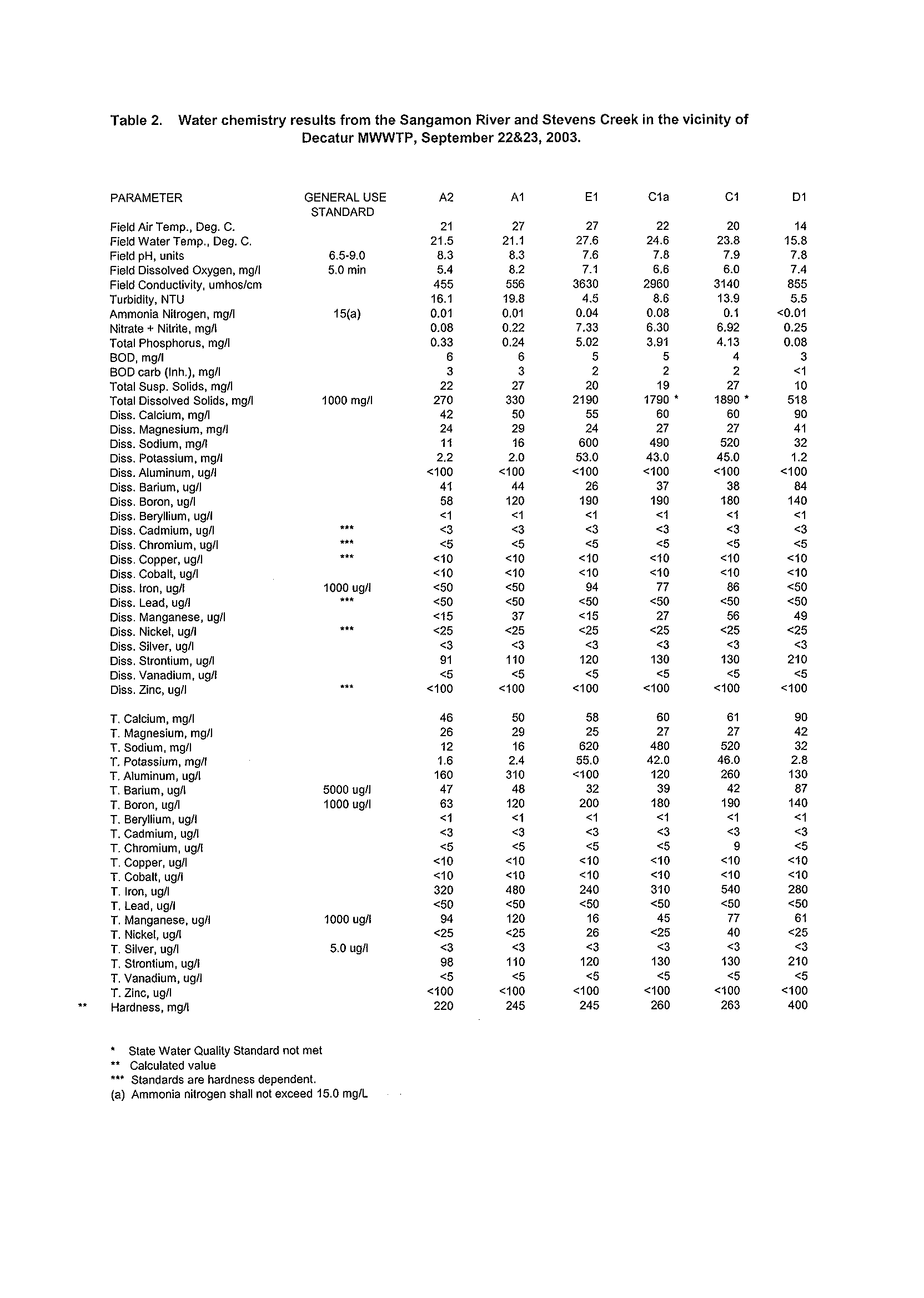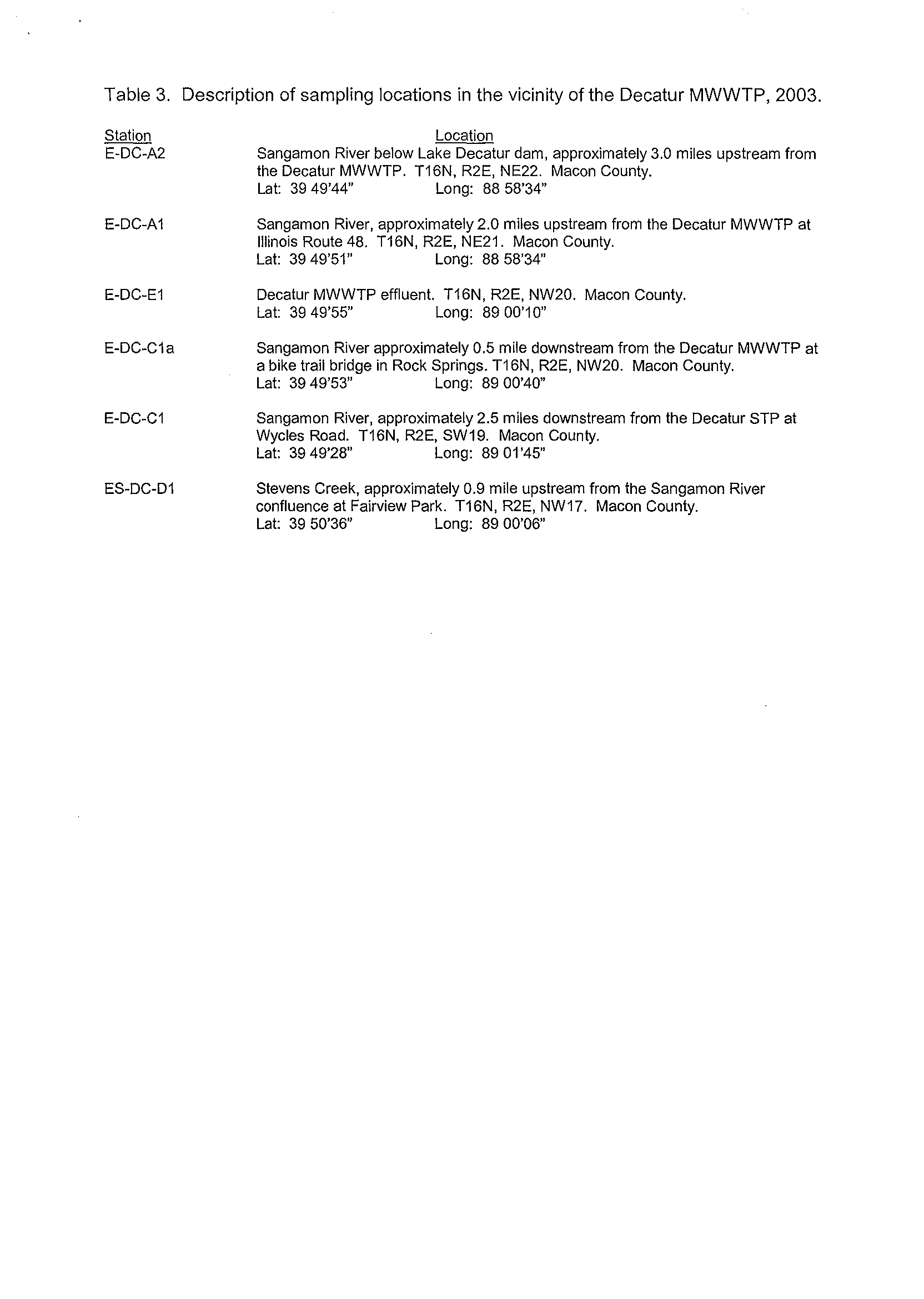 Table 3 . Description of sampling locations in the vicinity of the Decatur MWWTP, 2003 .