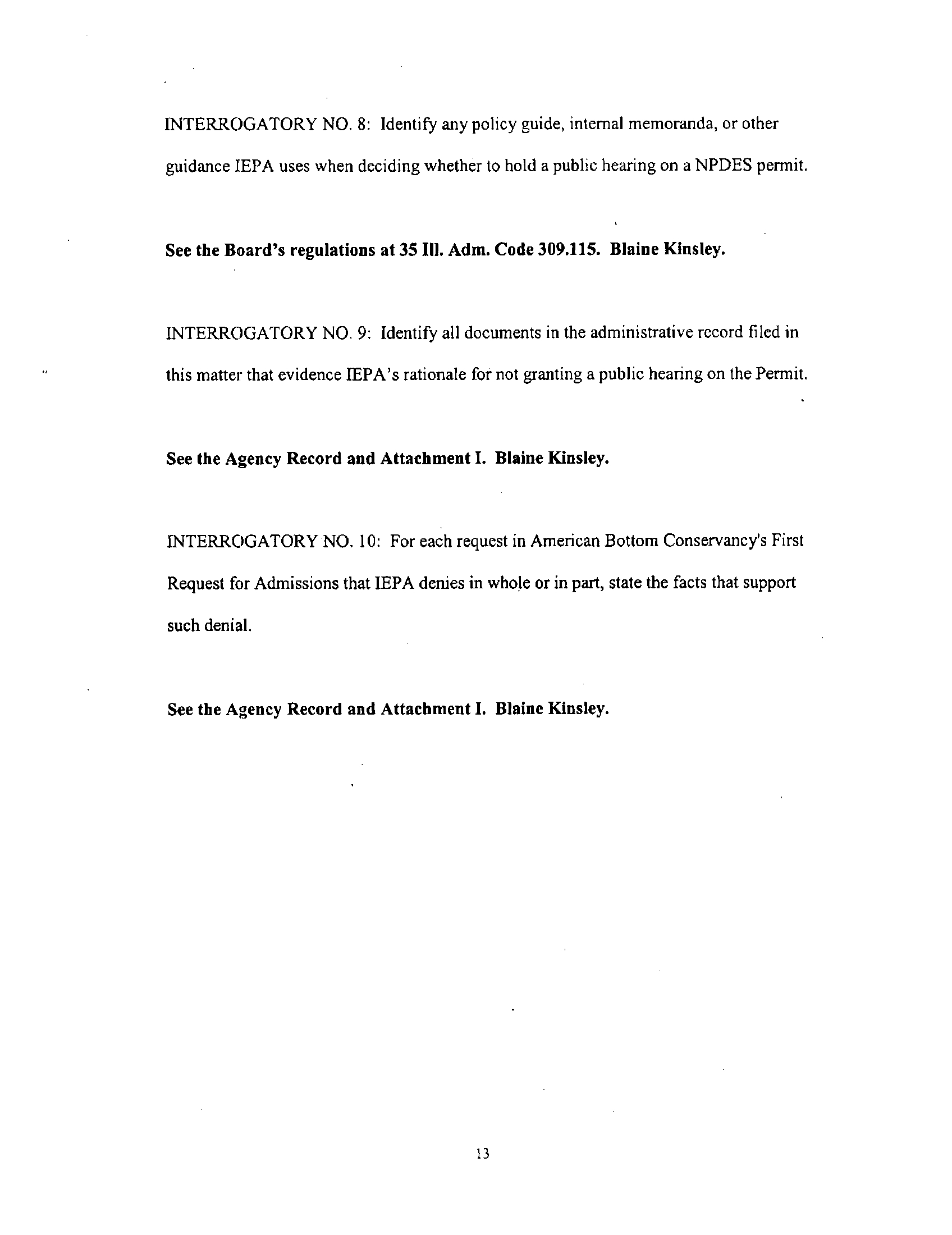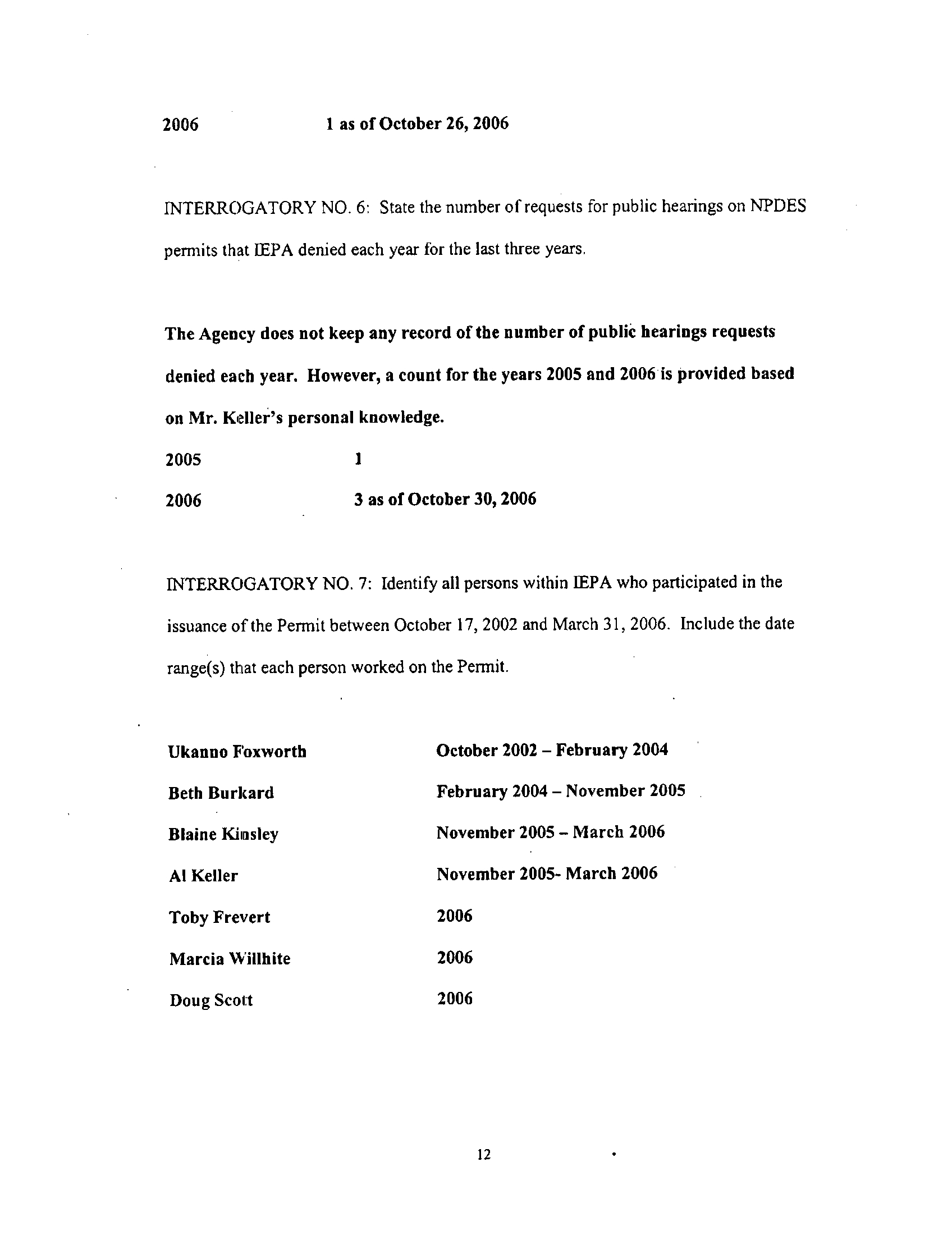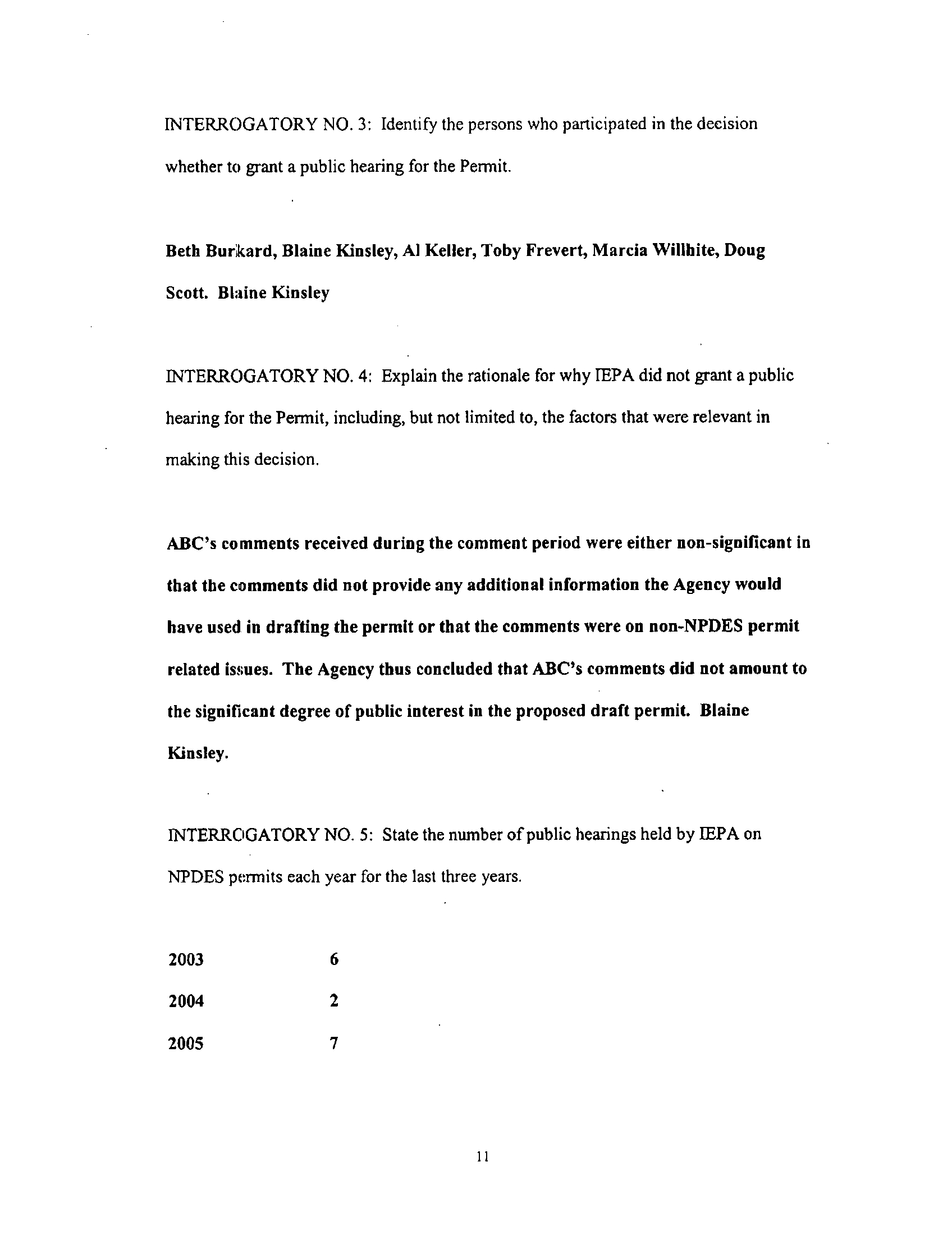 interrogatories with regard to this proceeding and the issuance of NPDES permit