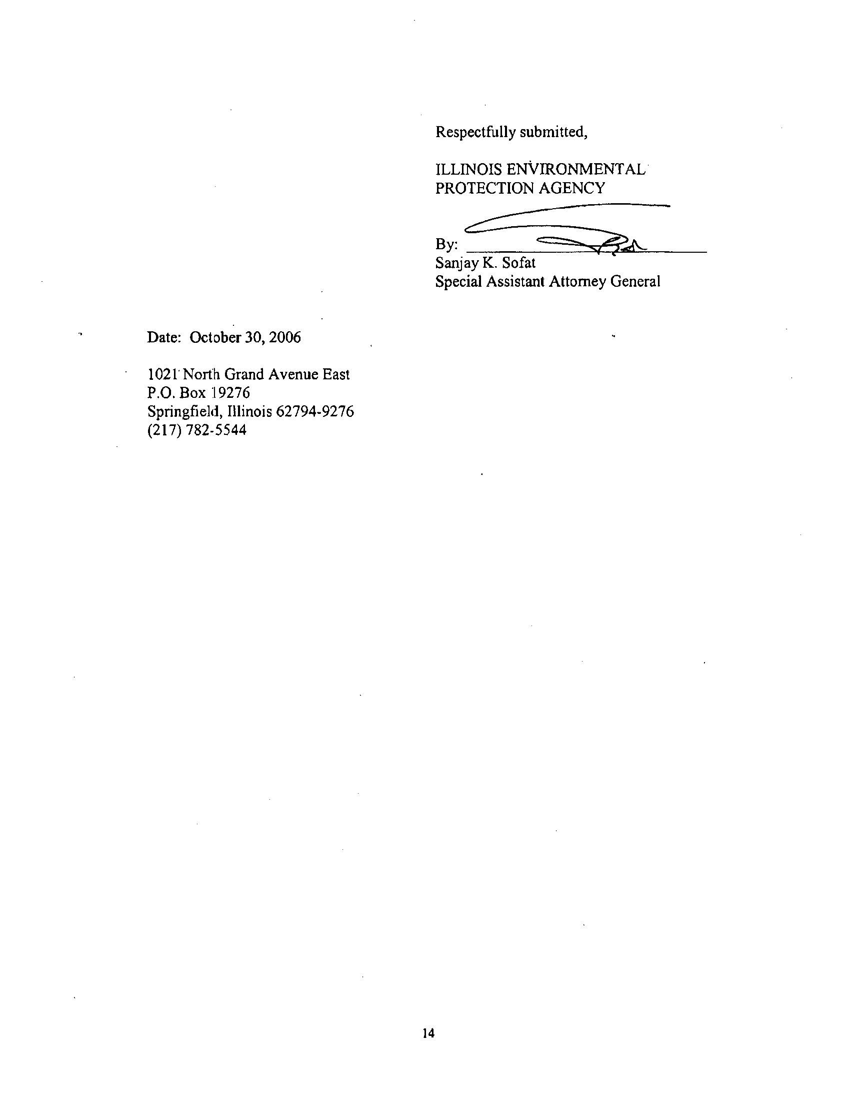 Special Assistant Attorney General, and pursuant to the Illinois Pollution Control Board
