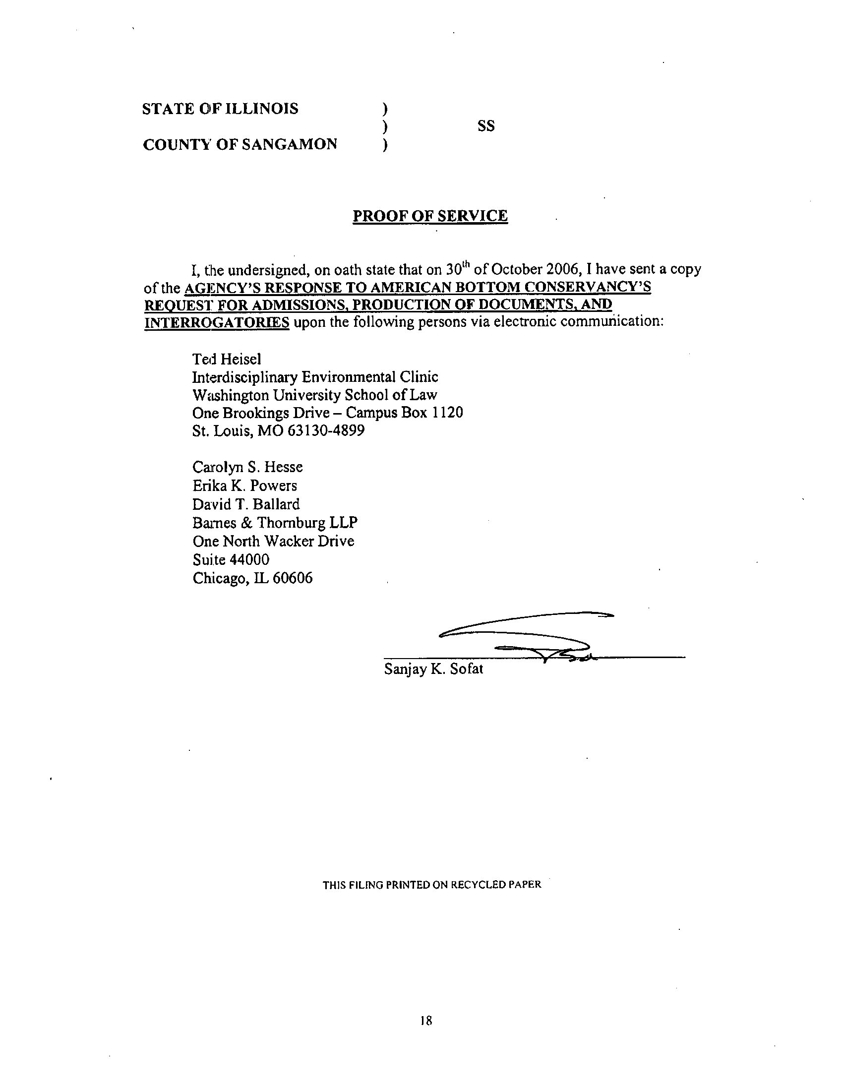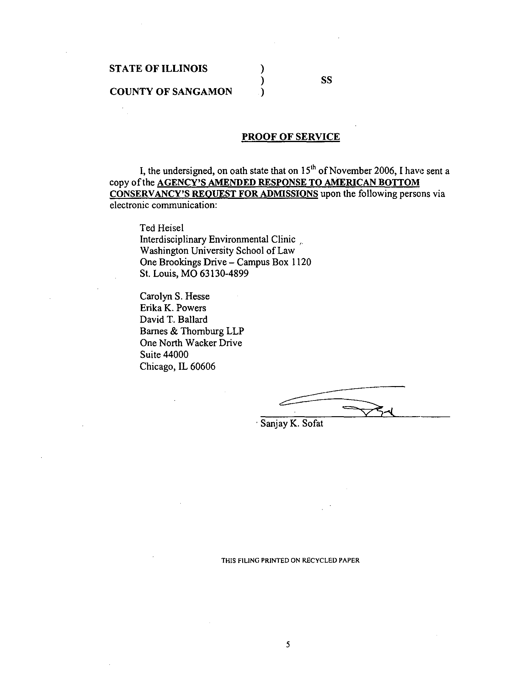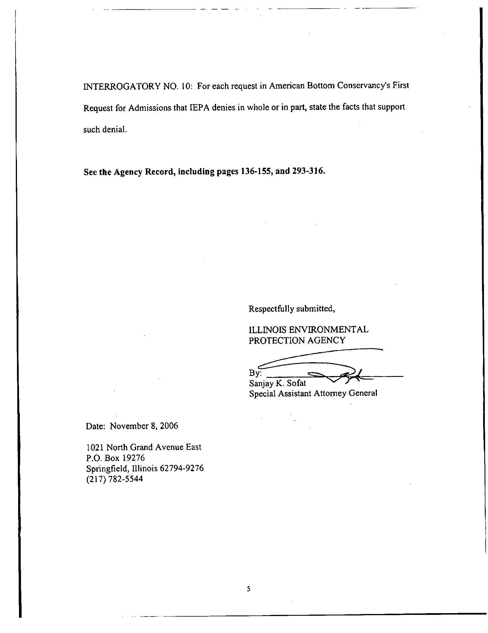 copy of the AGENCY'S AMENDED RESPONSE TO AMERICAN BOTTOM