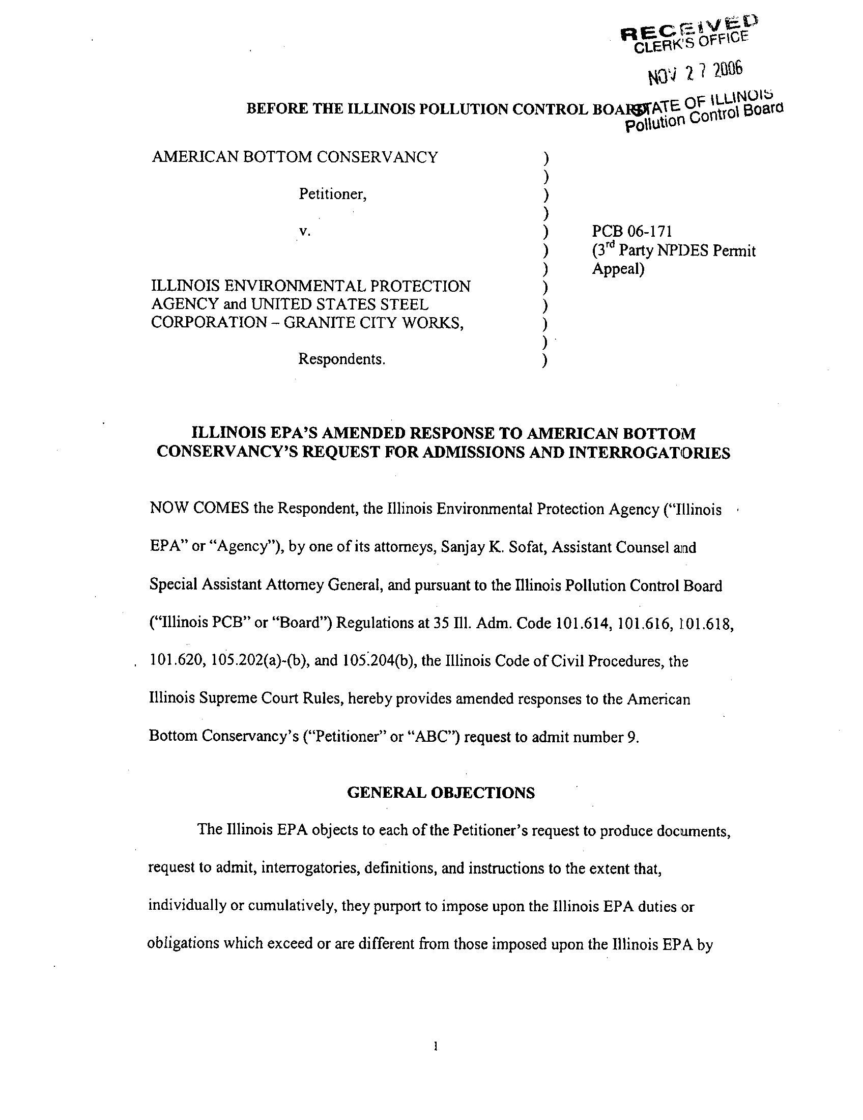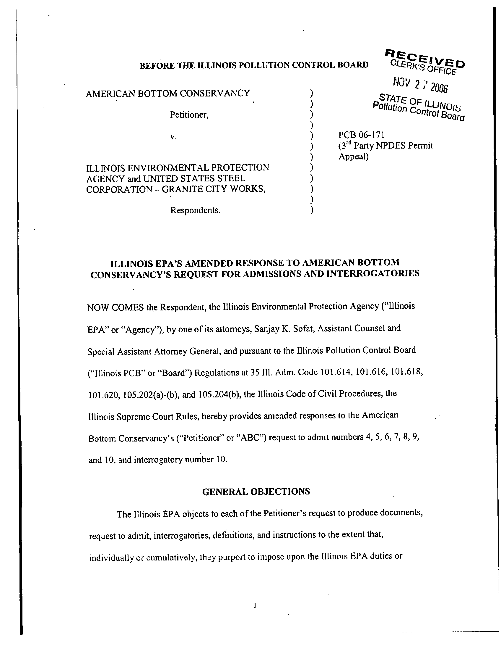 ILLINOIS EPA'S RESPONSE TO AMERICAN BOTTOM CONSERVANCY'S