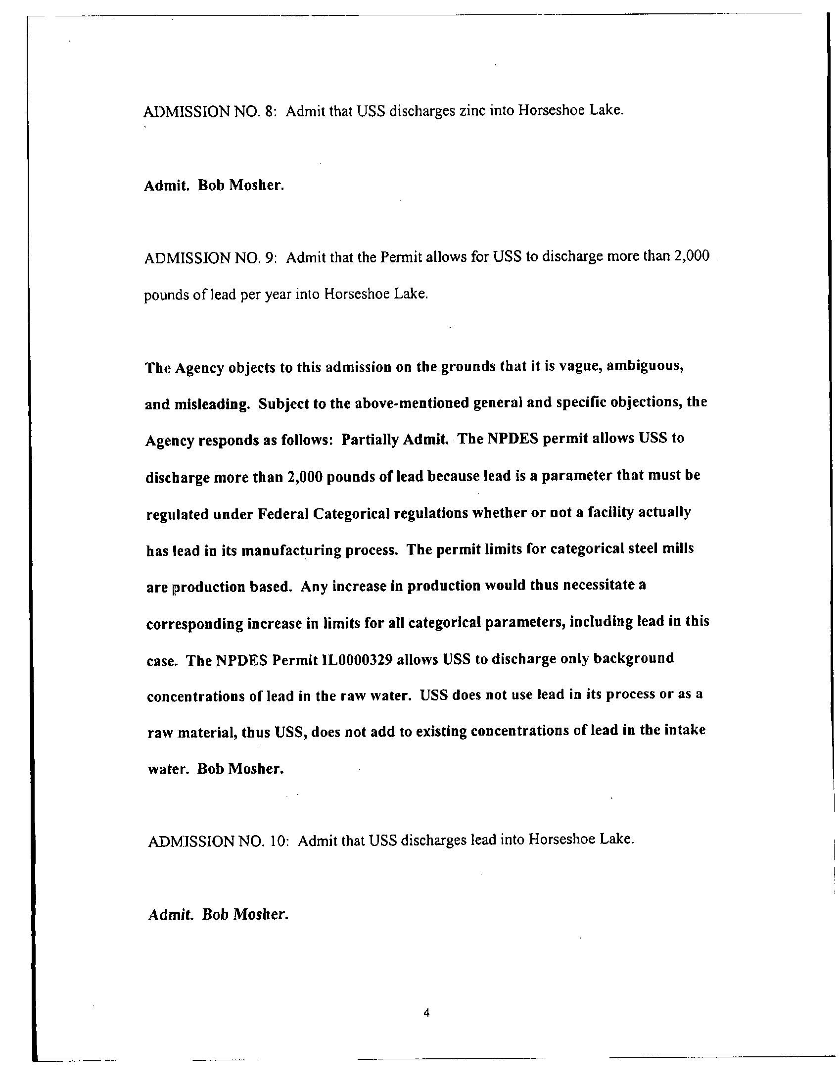 Agency . responds as follows : Partially Admit. The NPDES permit allows USS to