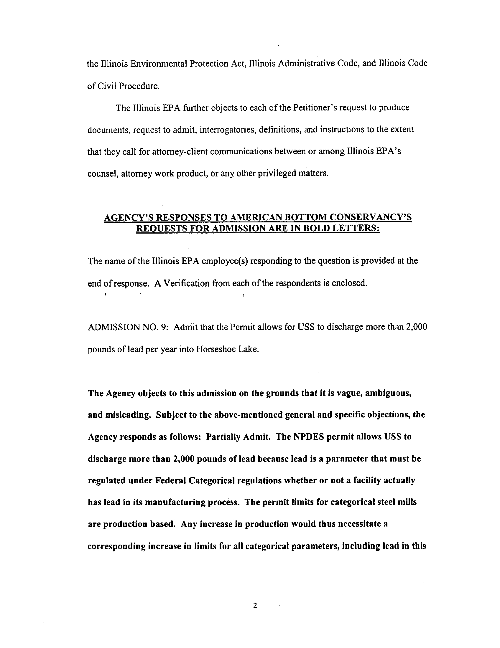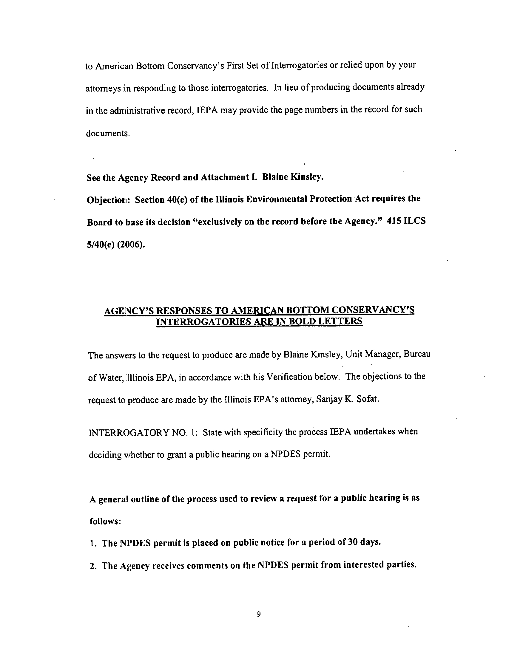 AGENCY'S RESPONSES TO AMERICAN BOTTOM CONSERVANCY'S