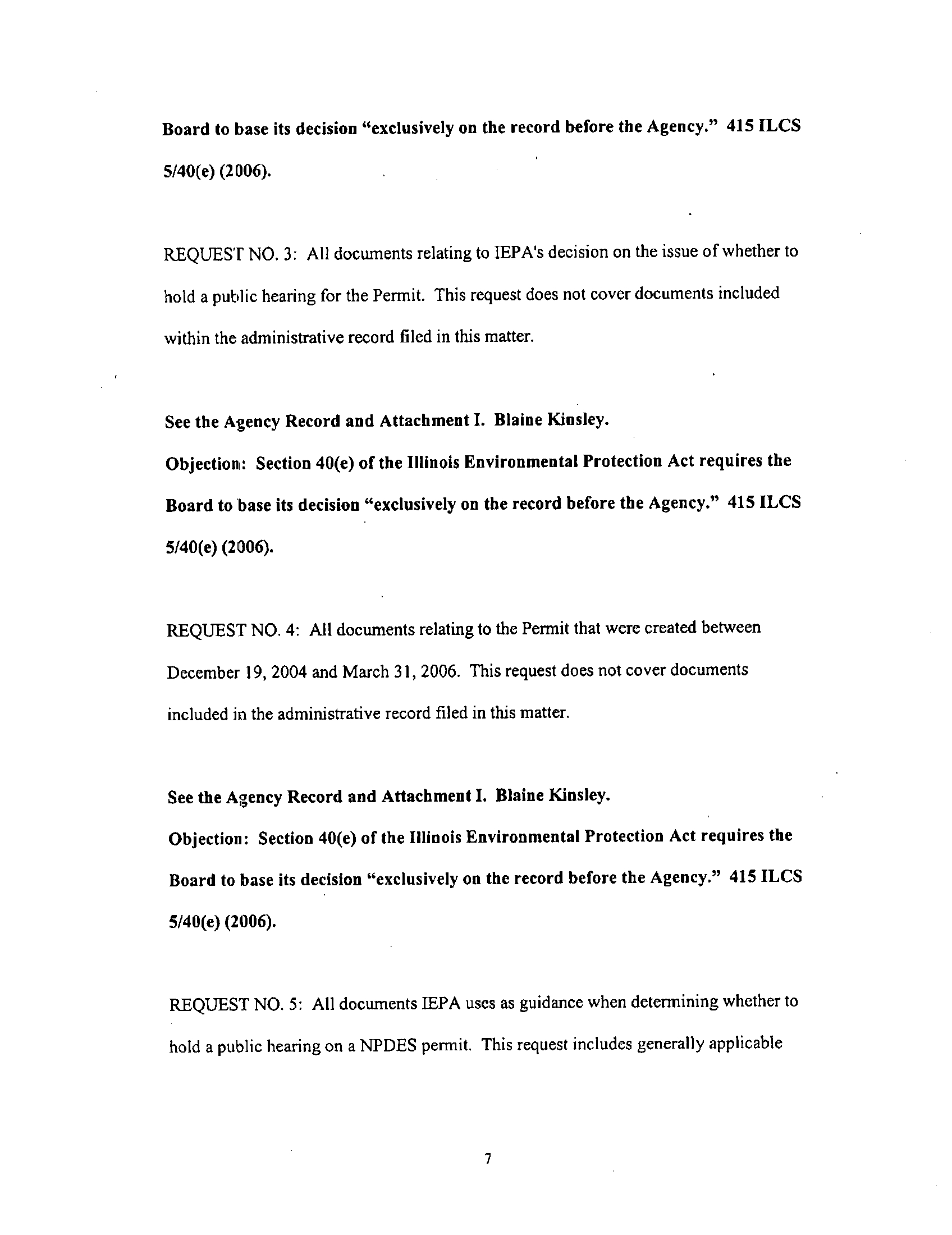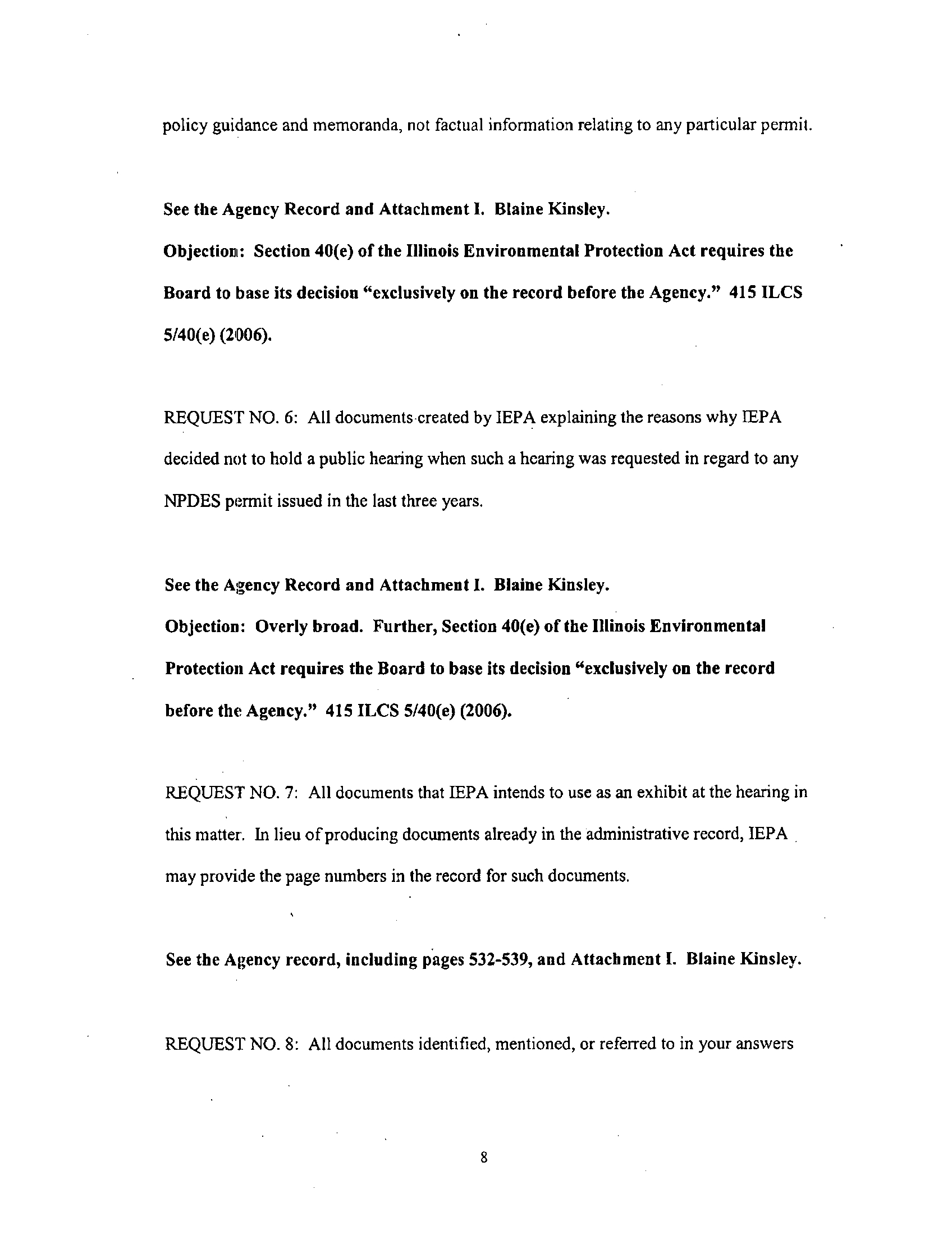 The Illinois EPA further objects to each of the Petitioner's request to produce