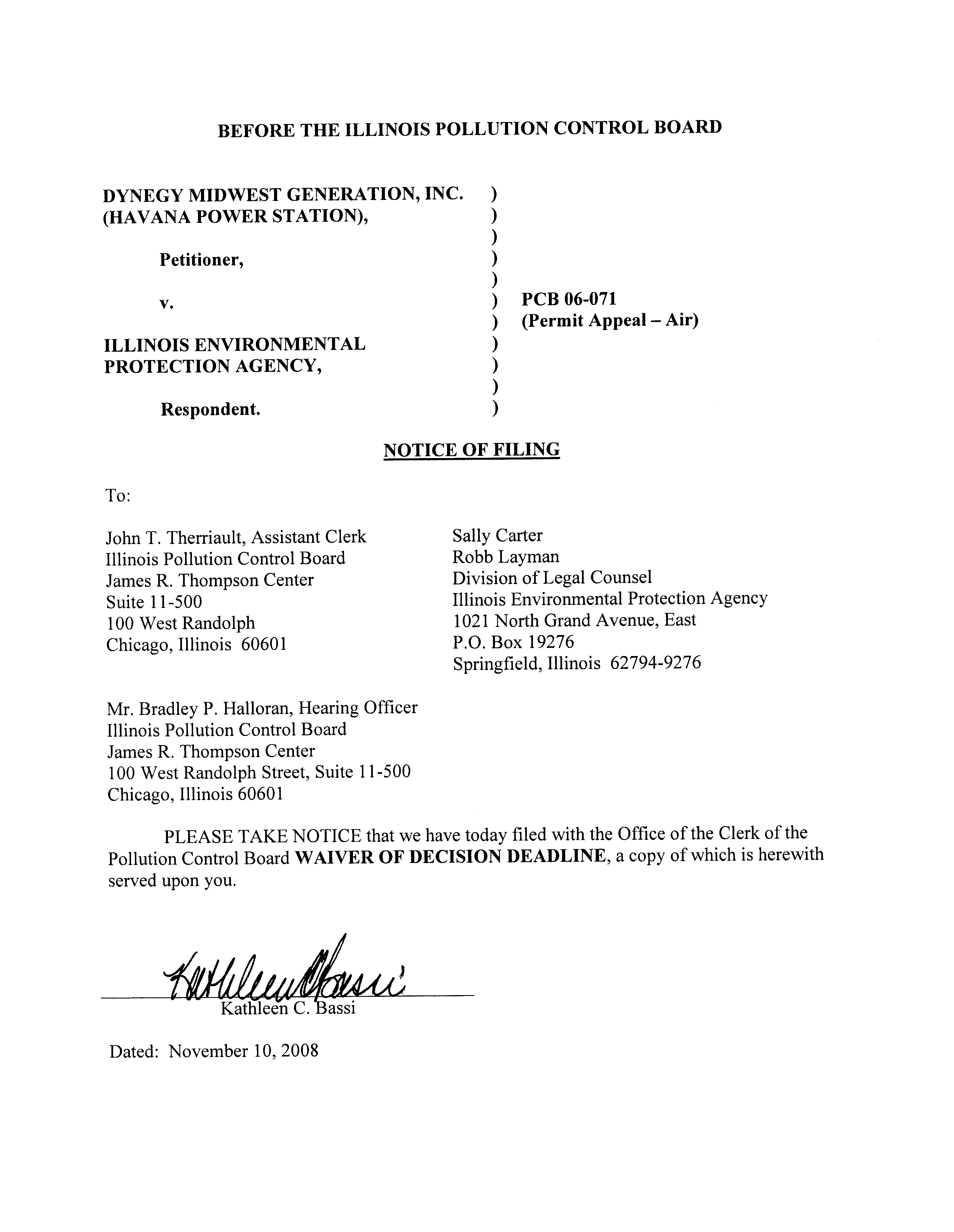 Electronic Filing - Received, Clerk's Office, November 10, 2008