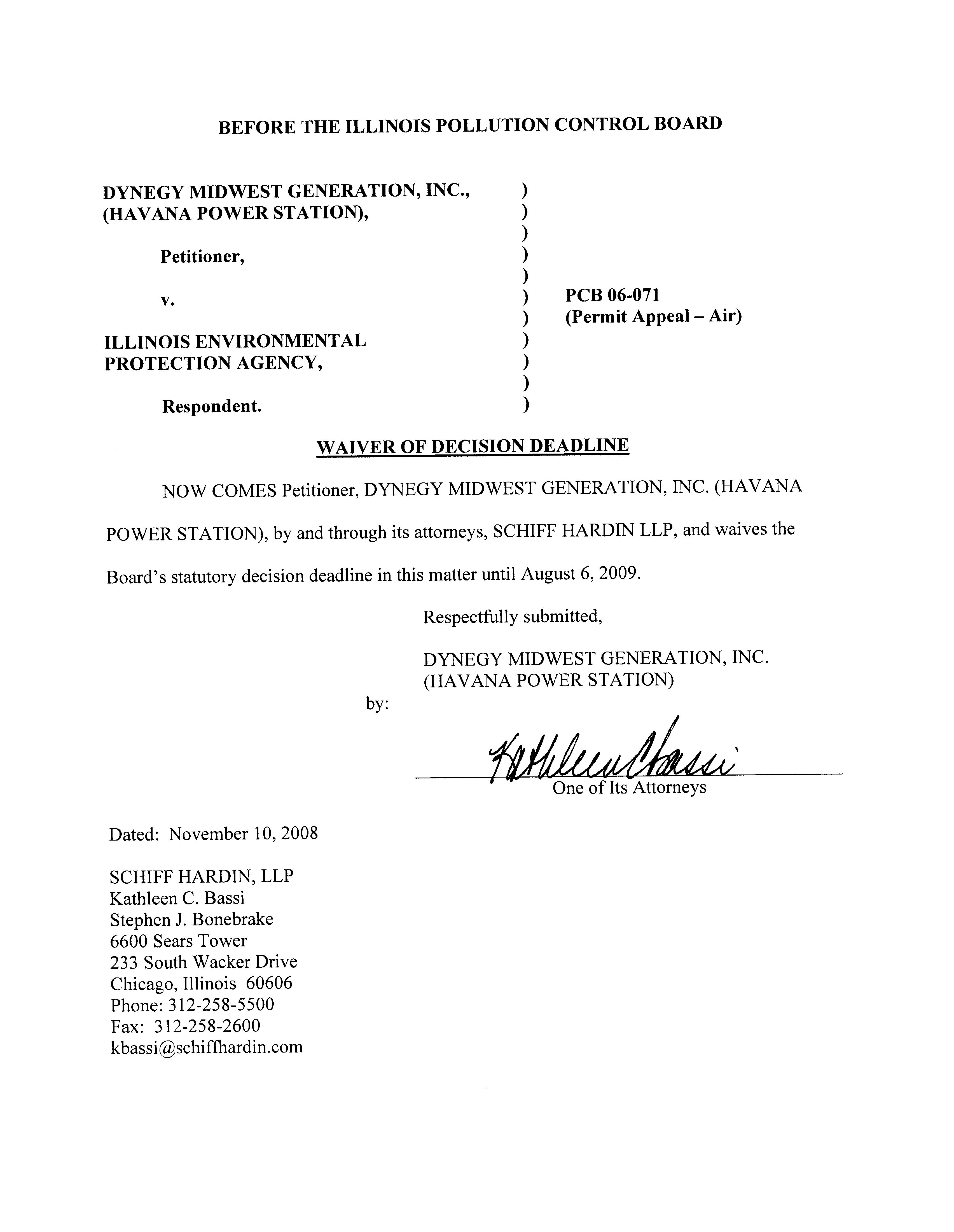 WAIVER OF DECISION DEADLINE,