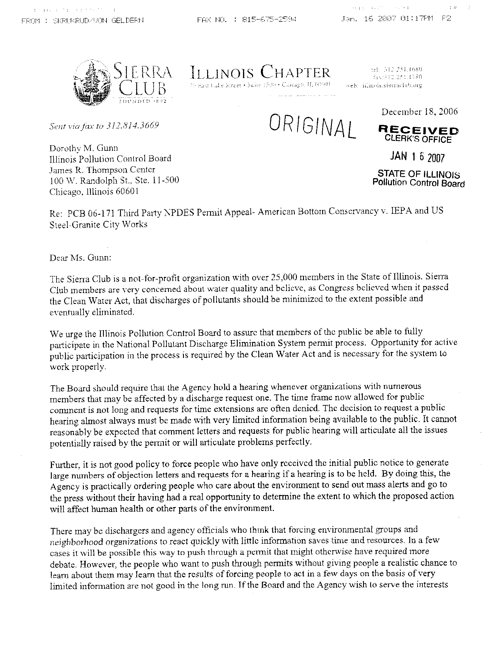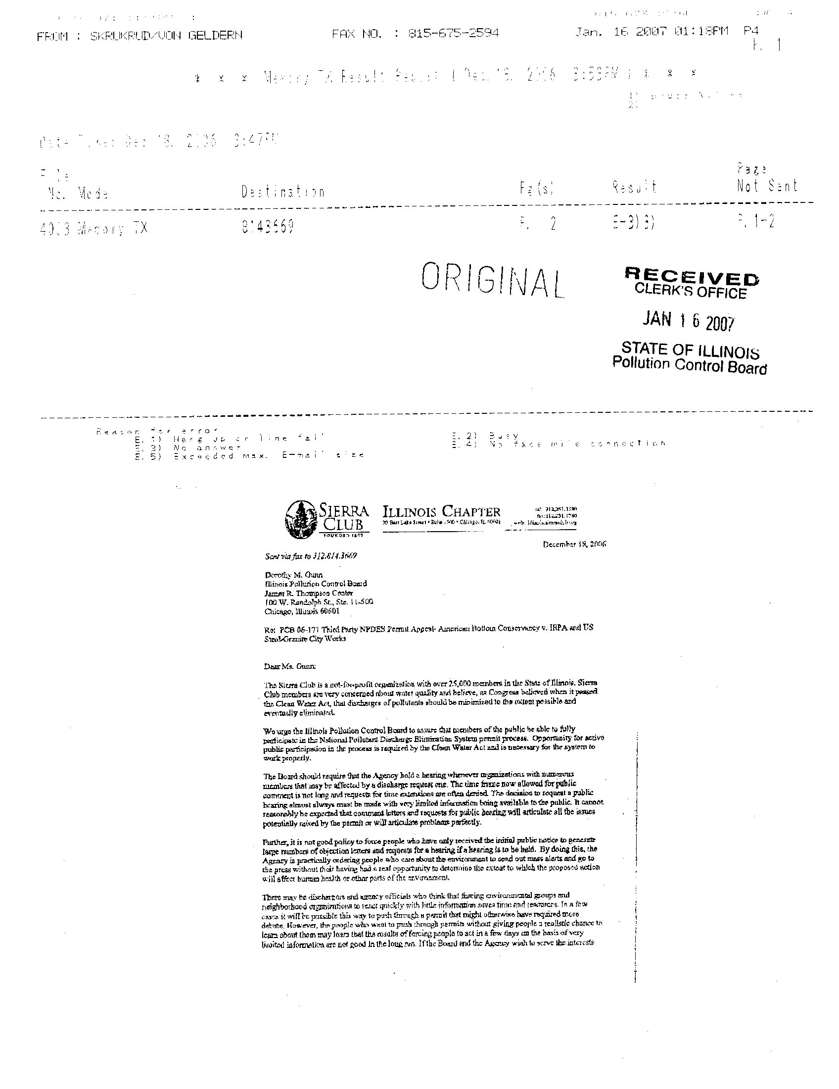 It appears that the fax of Sierra Club comments on this permit appeal which I sent on December 18, 2006