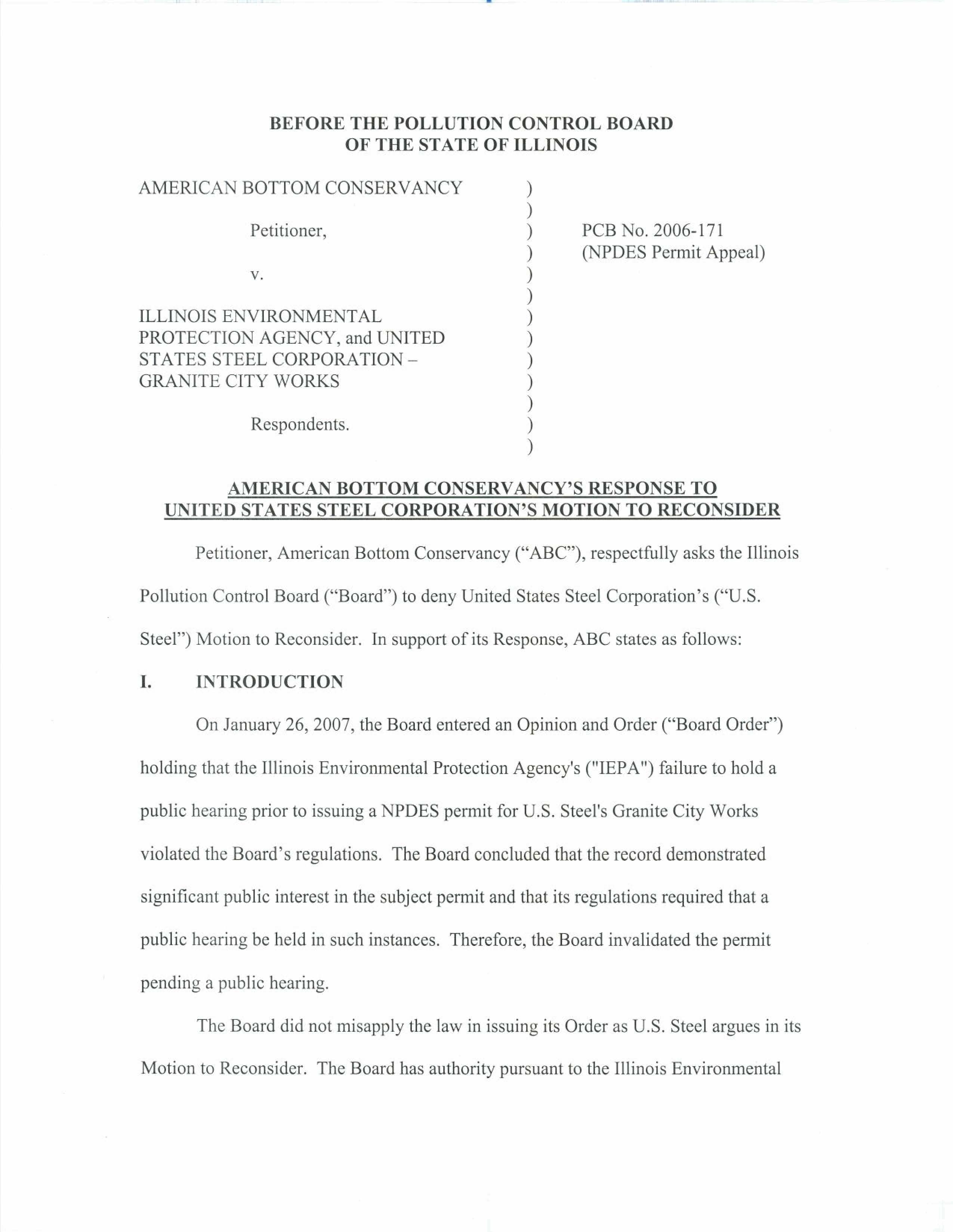 American Bottom Conservancy's Response to United States Steel Corporation's Motion