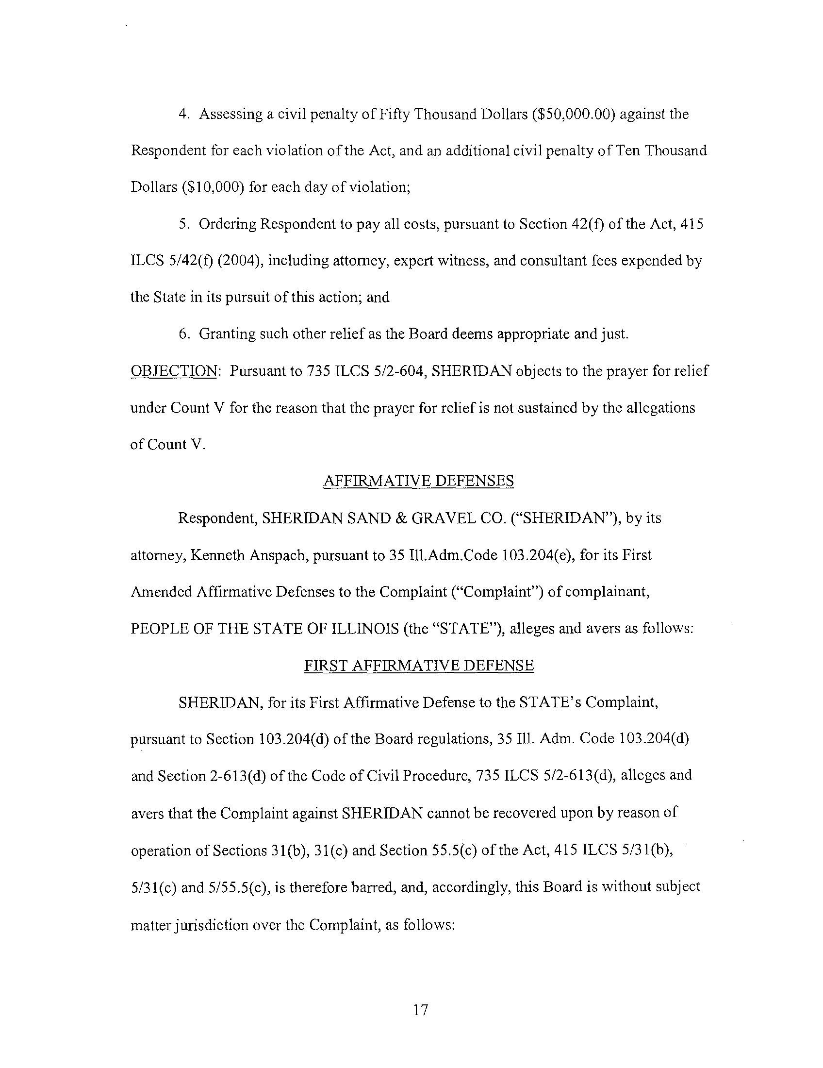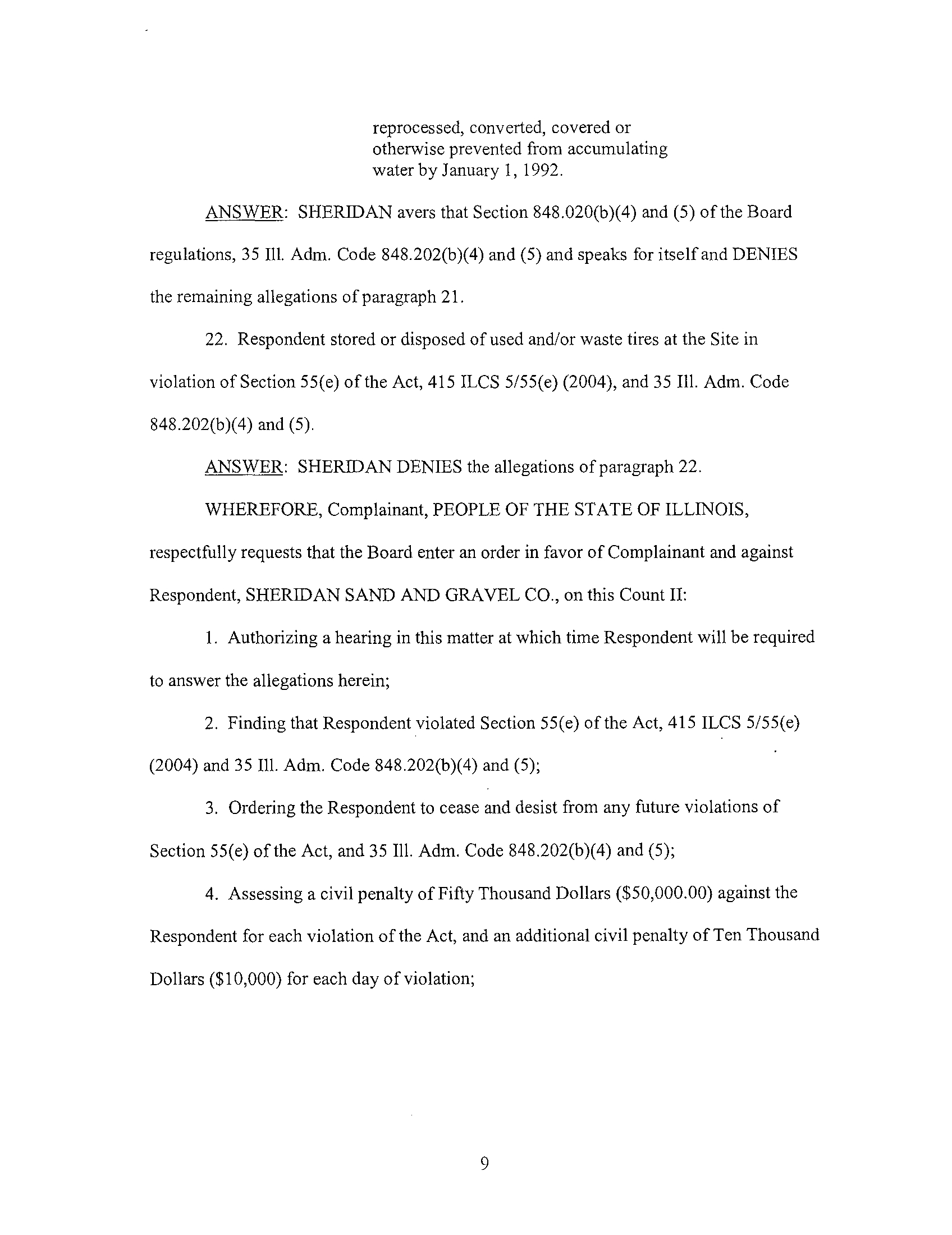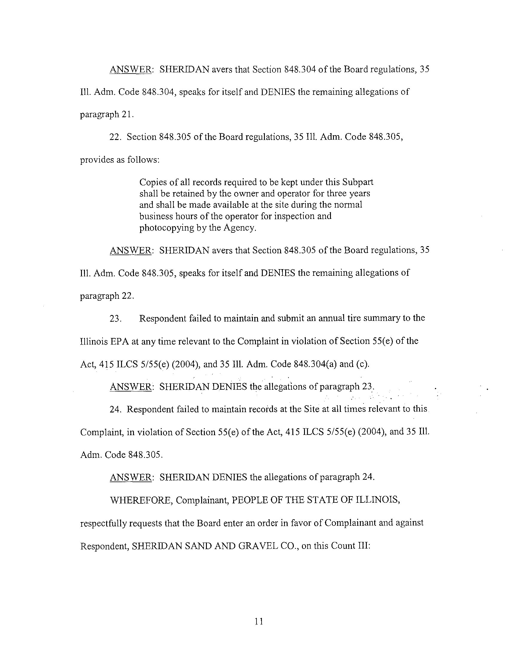 Sheridan Sand & Gravel Co . : Violations of Illinois