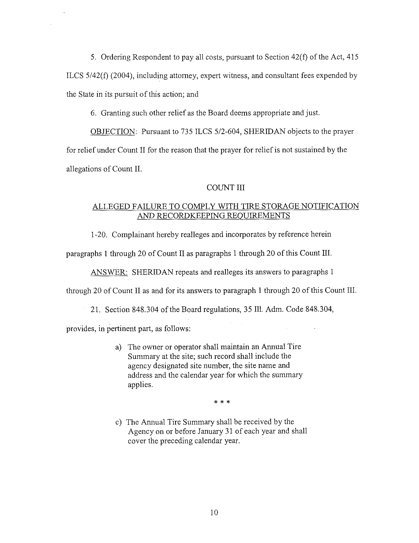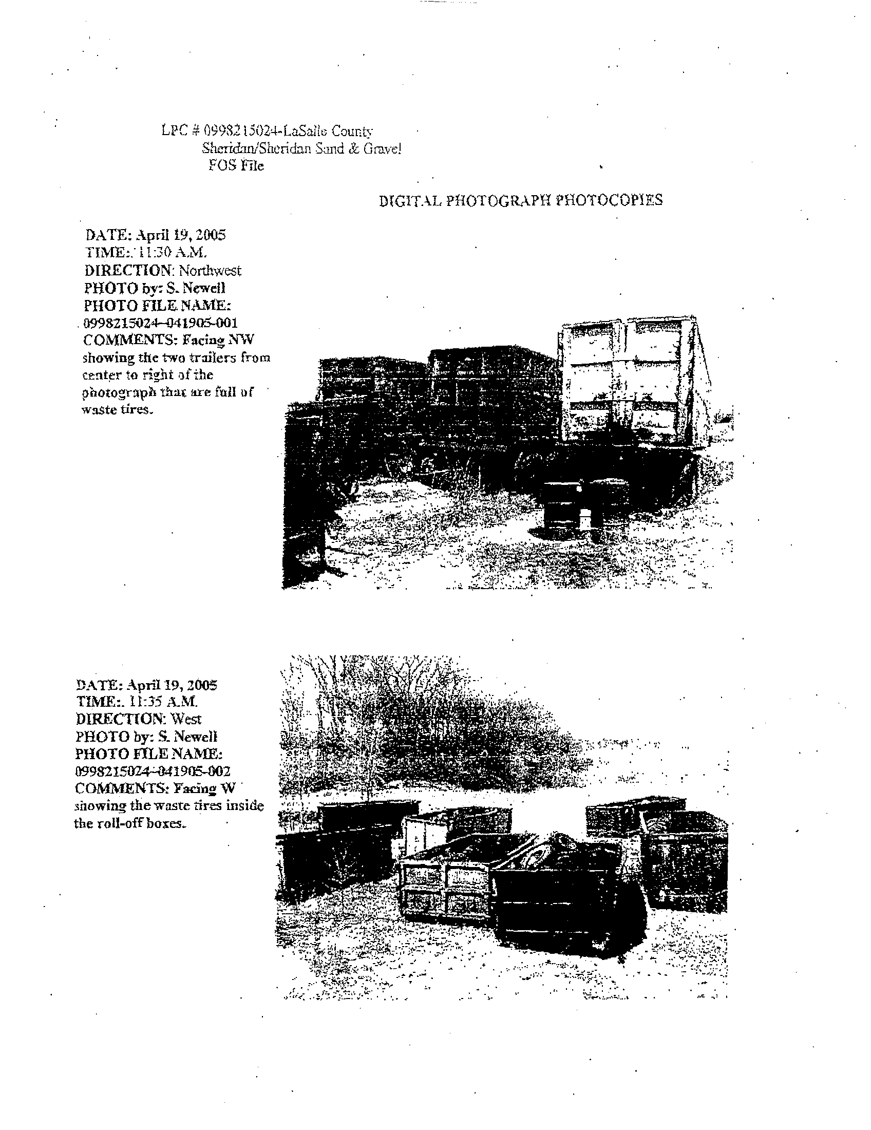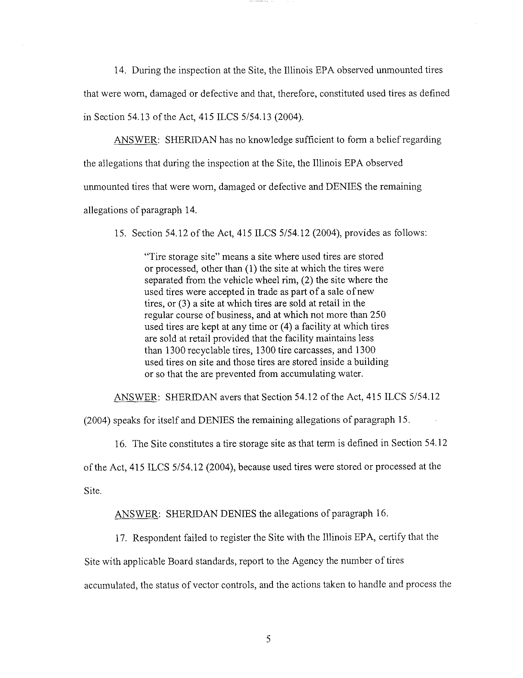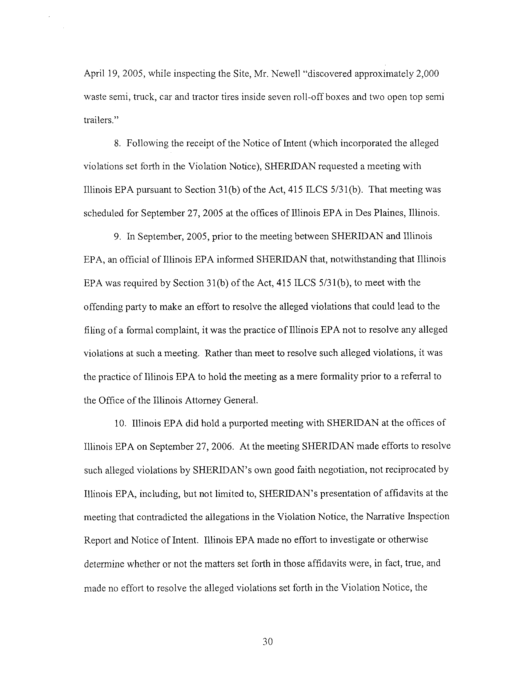 approximately April 19, 2005, the Illinois EPA conducted a tire storage inspection at the Sheridan