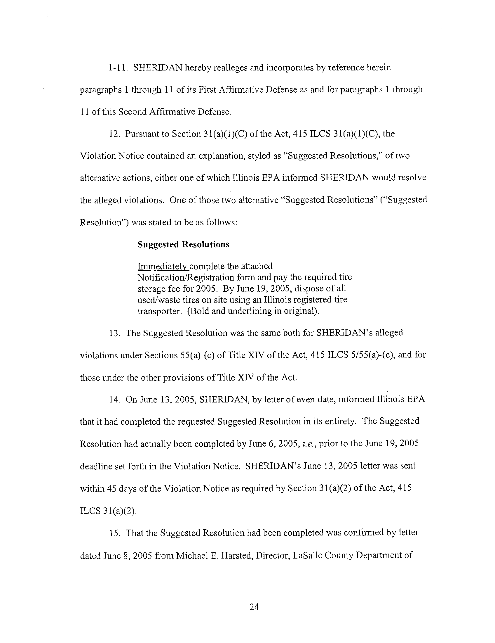 1 . SHERIDAN filed its Answer and Affirmative Defenses on October 13, 2006 :
