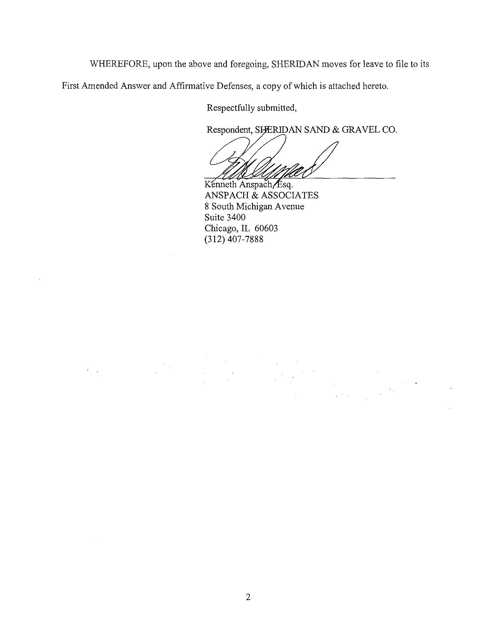 Respondent, SHERIDAN SAND & GRAVEL CO . ("SHERIDAN"), by its attorney,