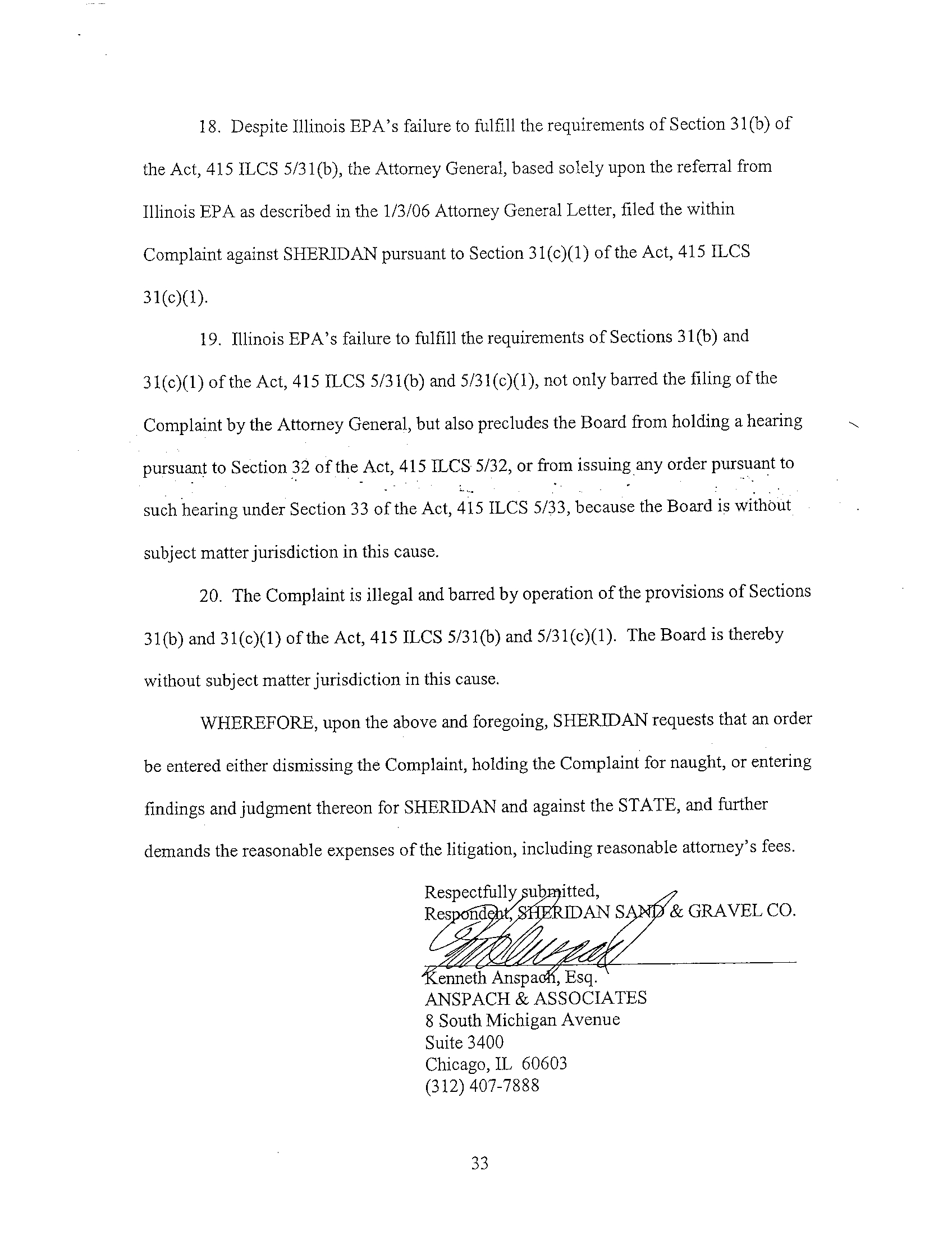 Kenneth Anspach, pursuant to 735 ILCS 5/2-616(a) and 35 Ill .Adm.Code 101 .100(b) hereby
