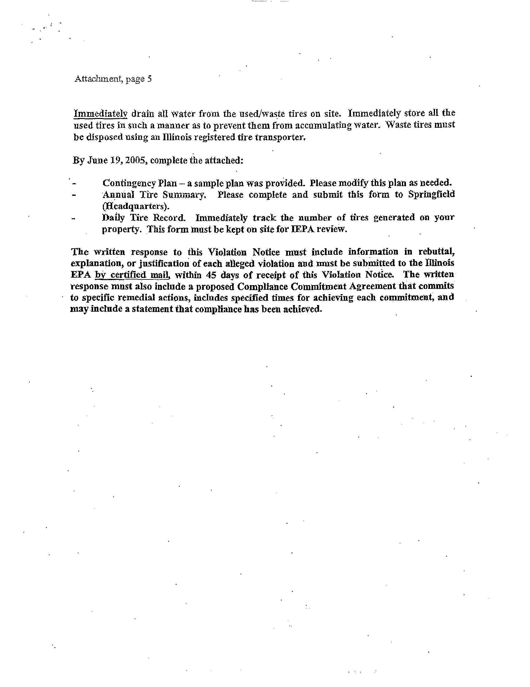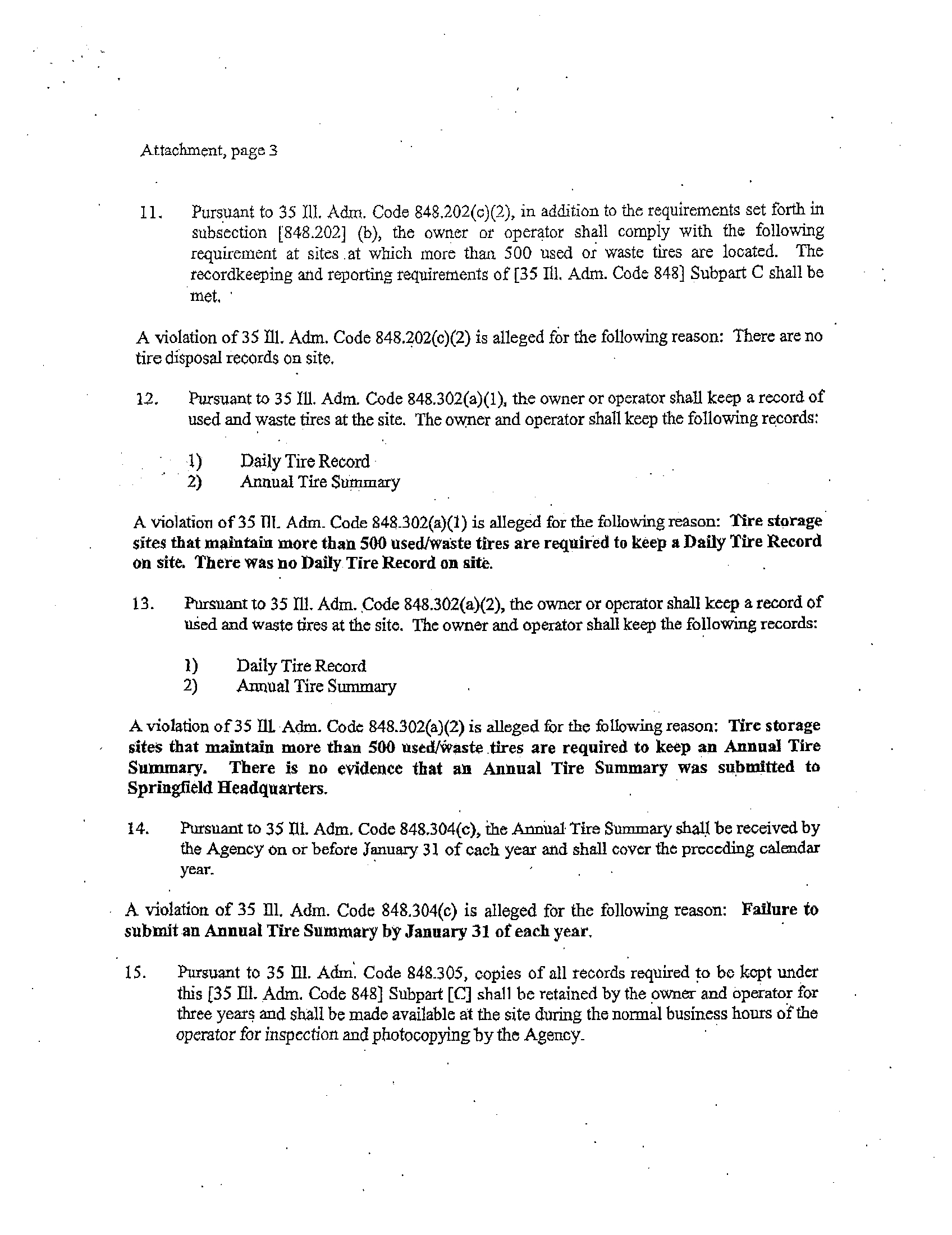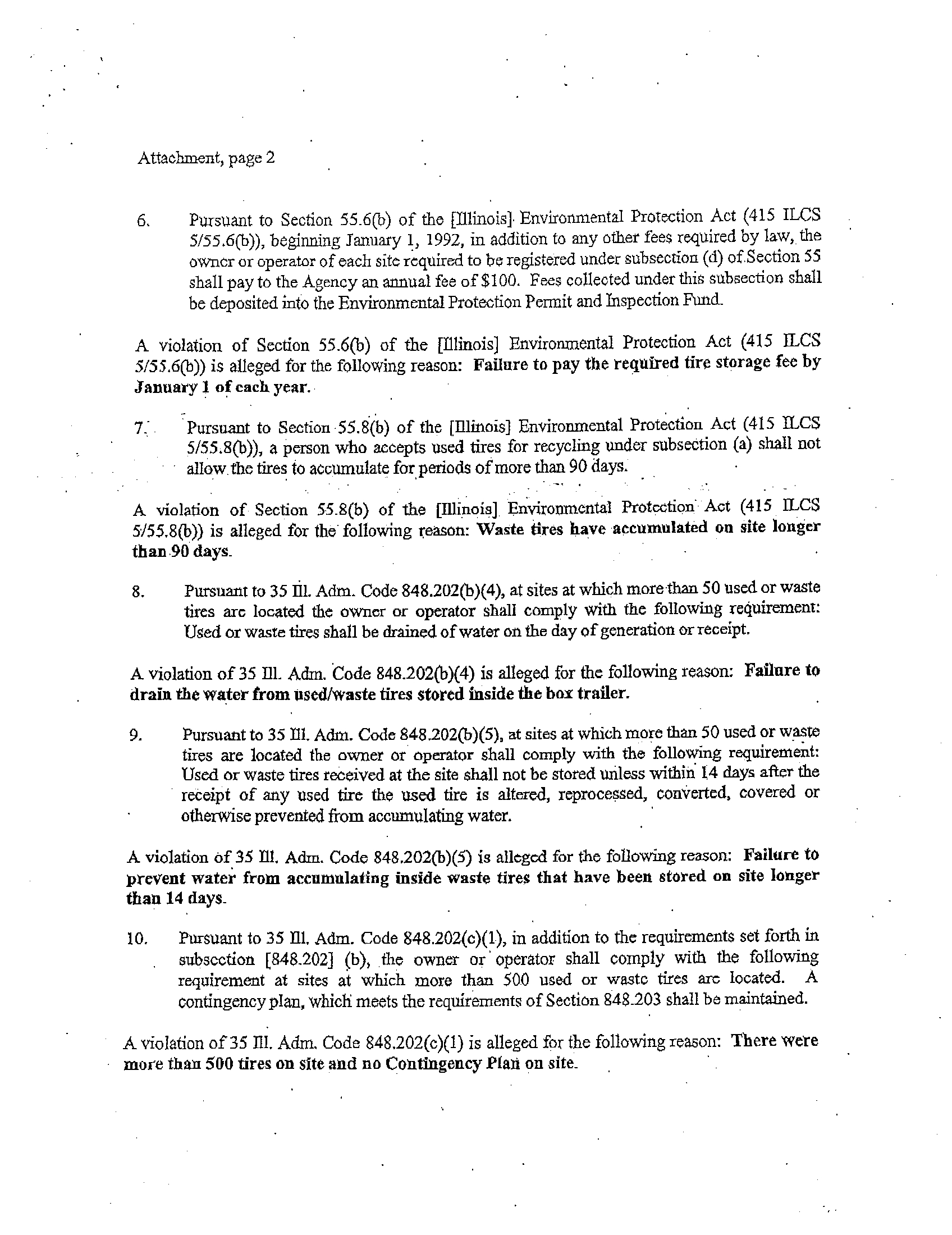 inspection, the Illinois EPA observed approximately 2000 used/waste tires at the site, which