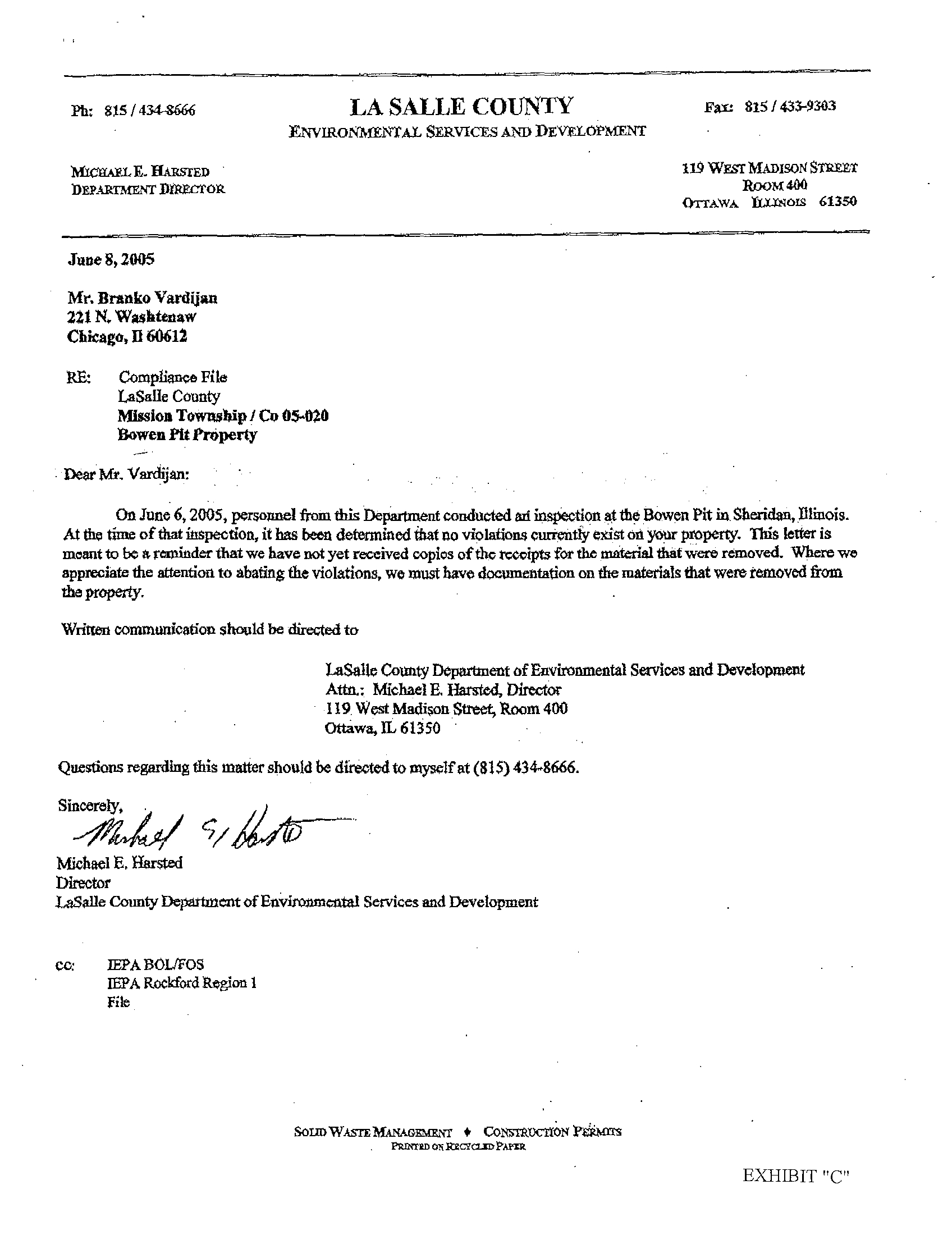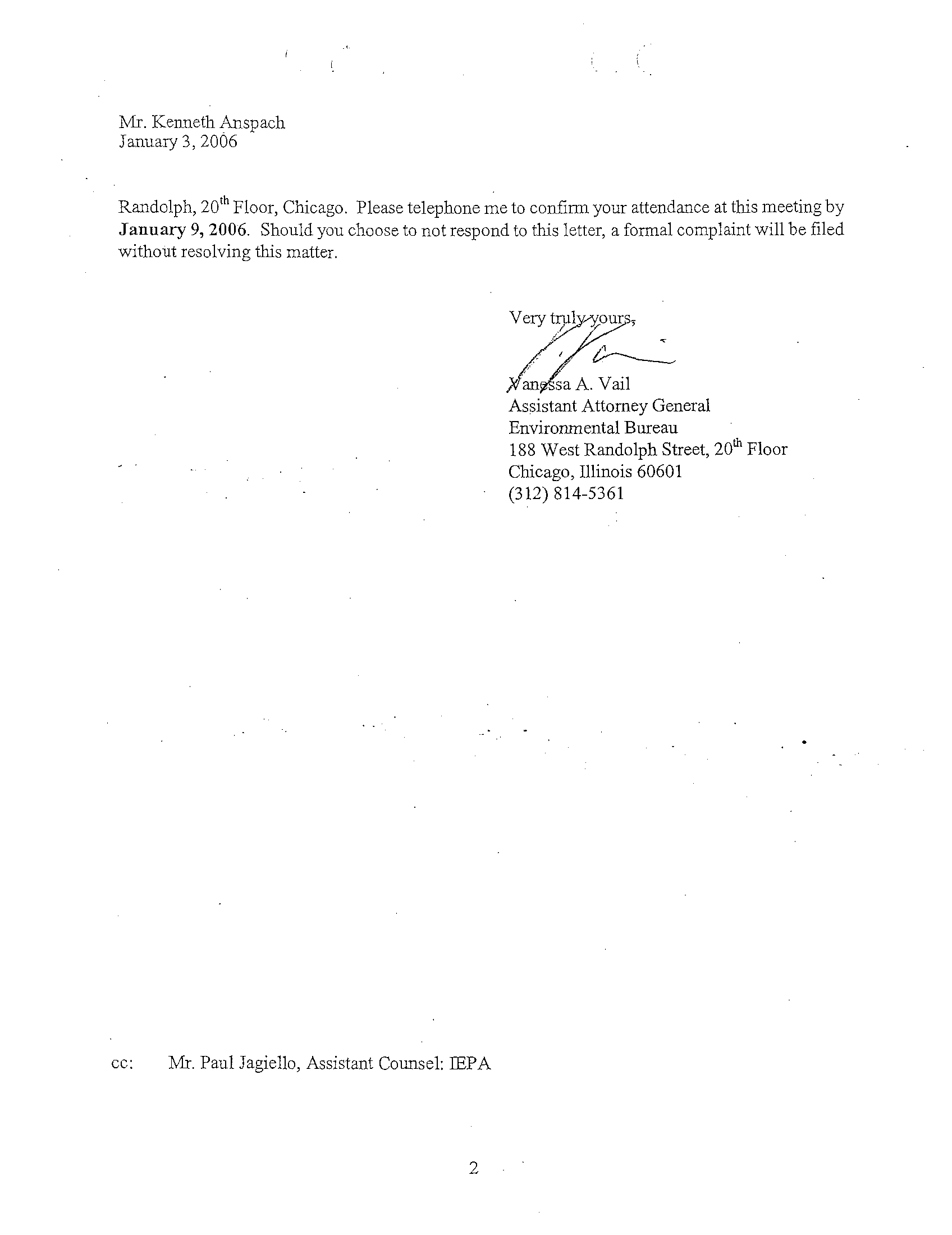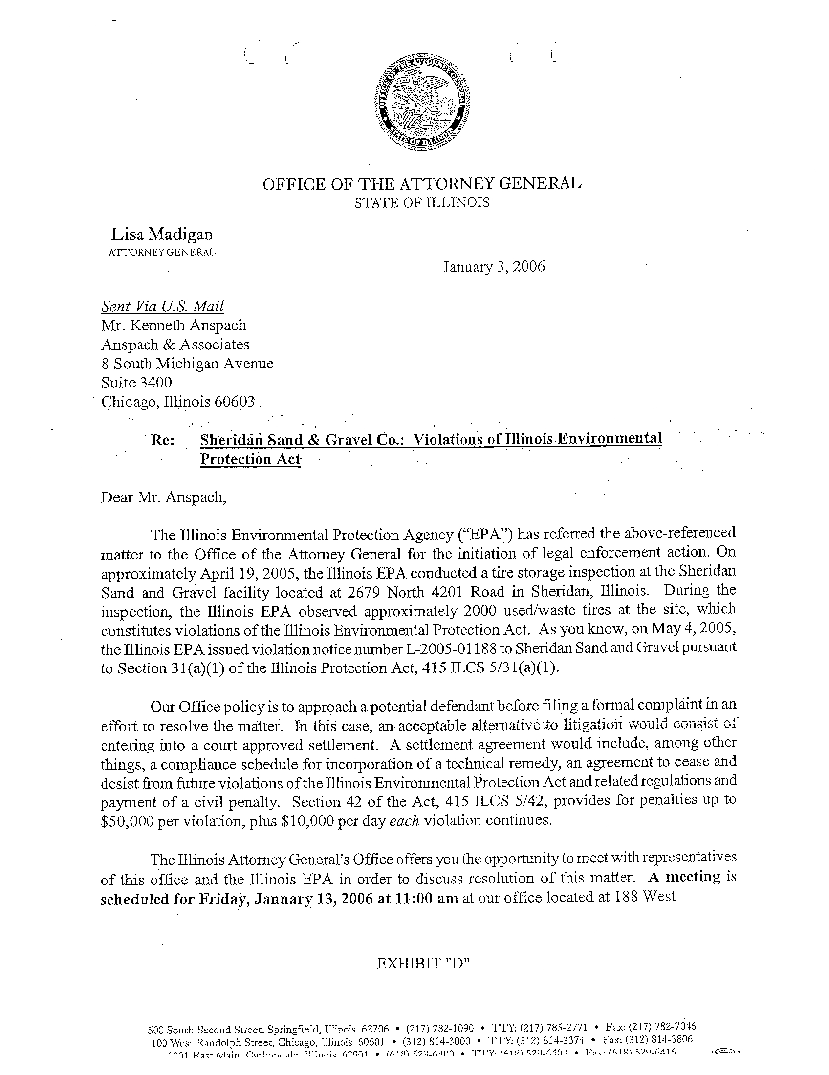 of this office and the Illinois EPA in order to discuss resolution of this matter