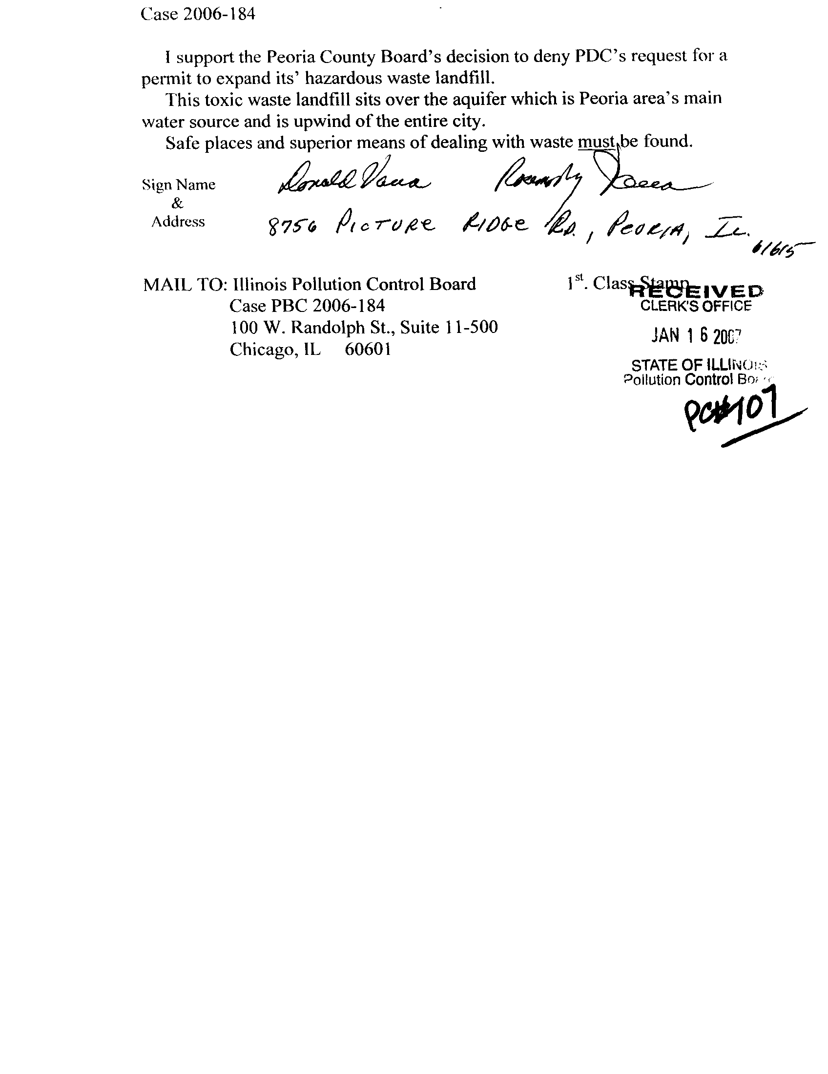 I support the Peoria County Board's decision to deny PDC's request for a
