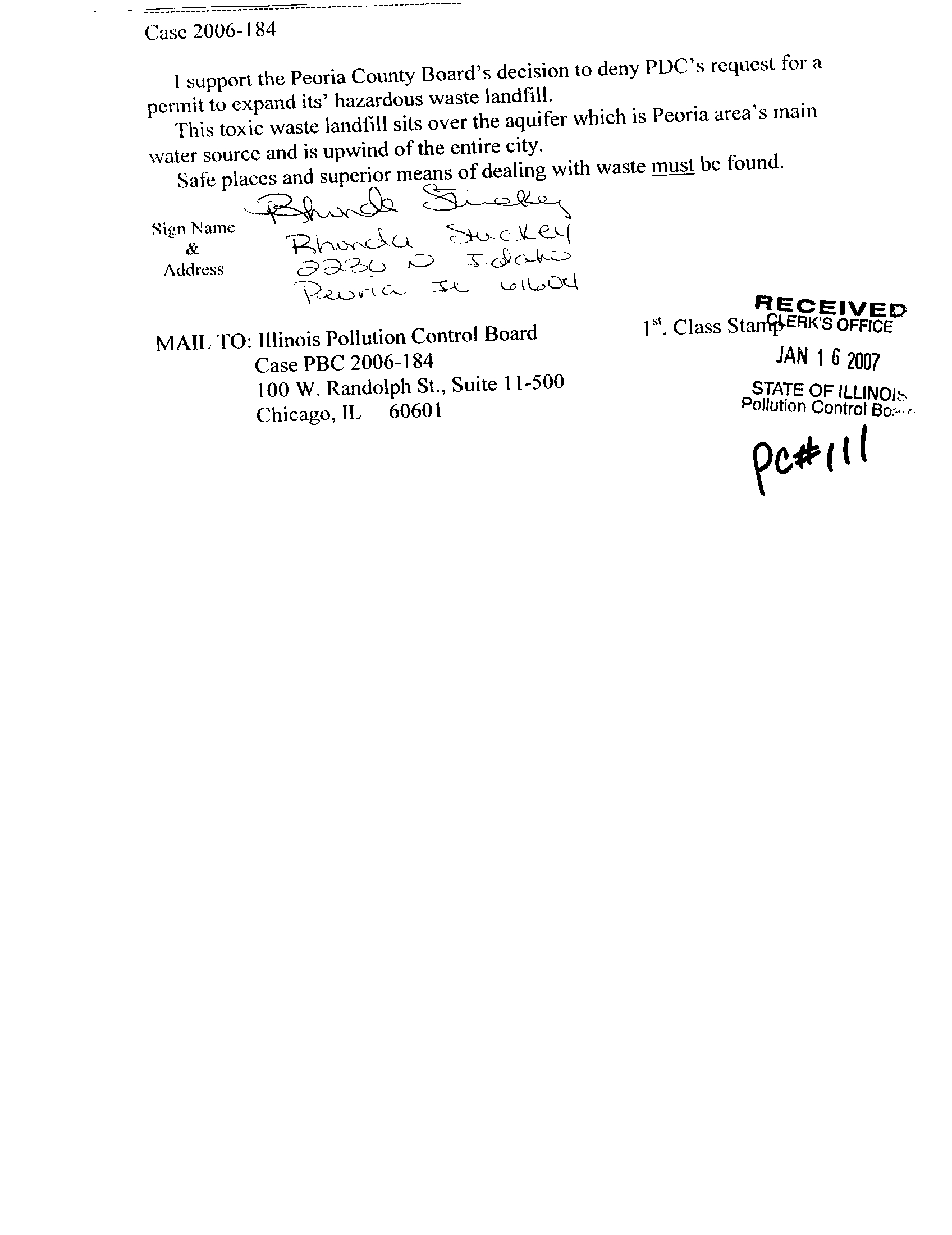 I support the Peoria County Board's decision to deny PDC's request for a