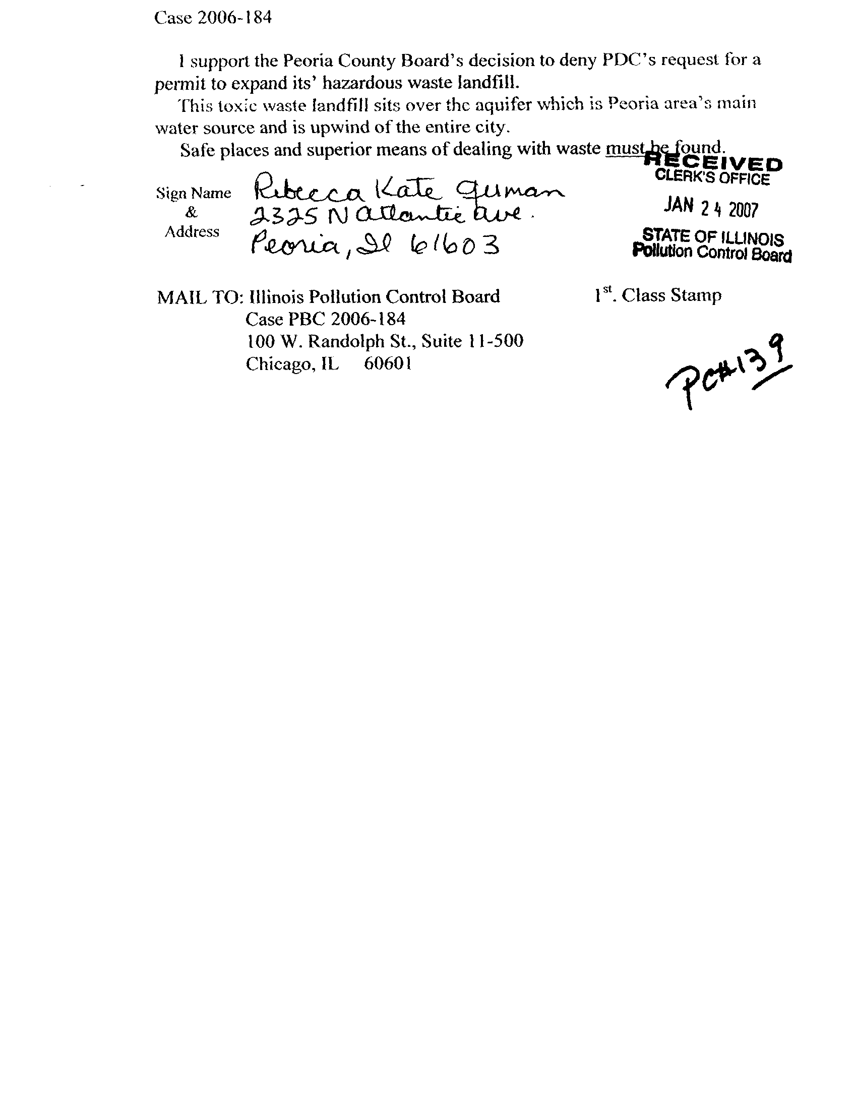 I support the Peoria County Board's decision to deny PDC's request for a