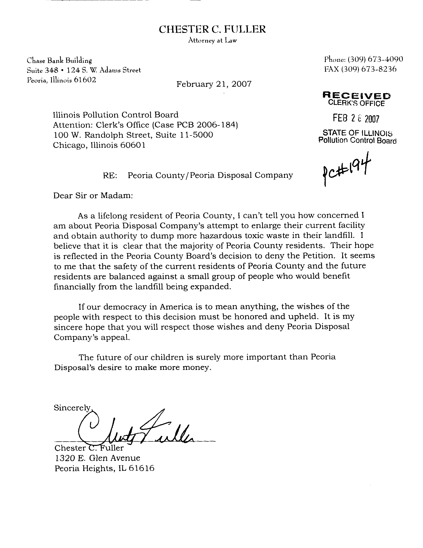 sincere hope that you will respect those wishes and deny Peoria Disposal