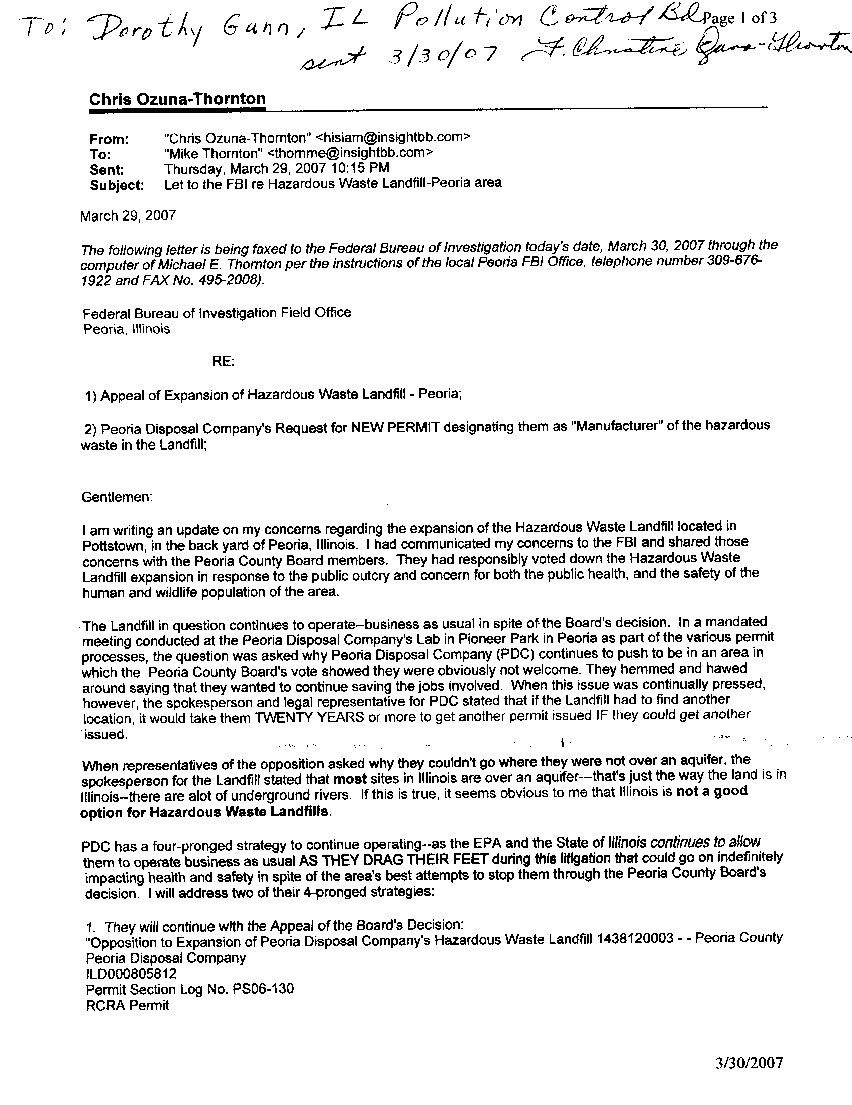 voice of the Peoria County Board, the local governing body over the Landfill, but it sounds suspiciously to me
