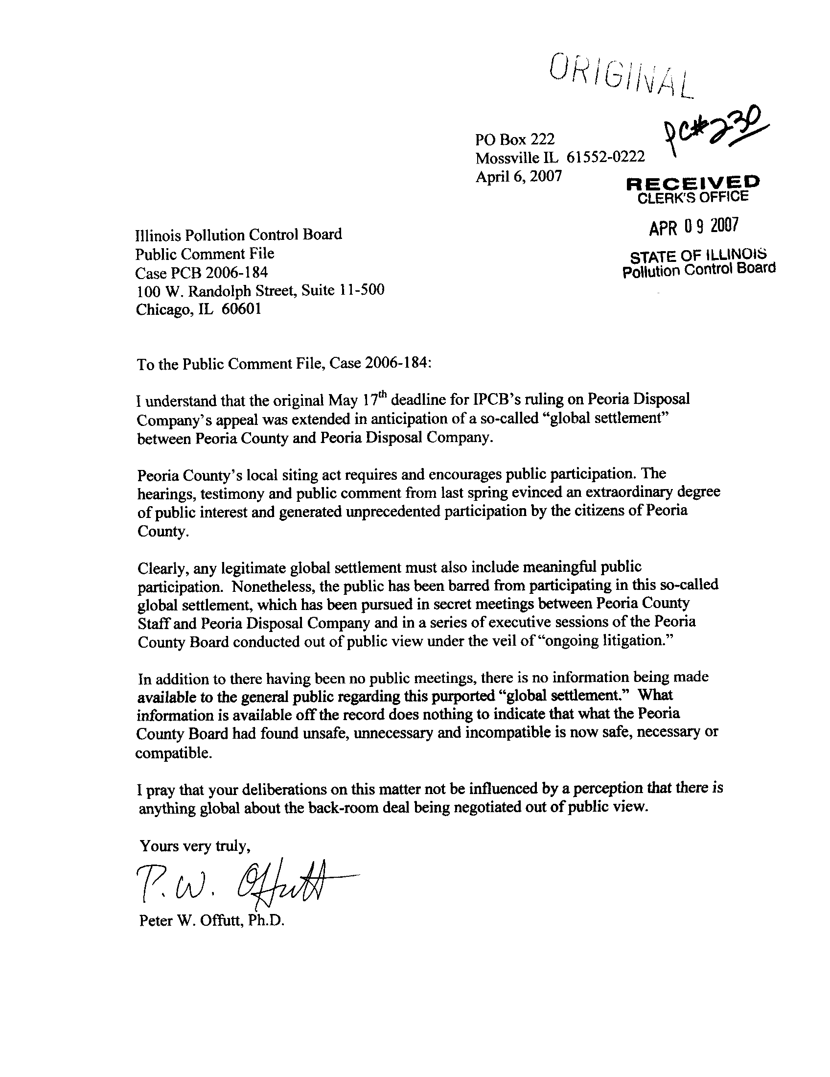 I understand that the original May 17`" deadline for IPCB's ruling on Peoria Disposal